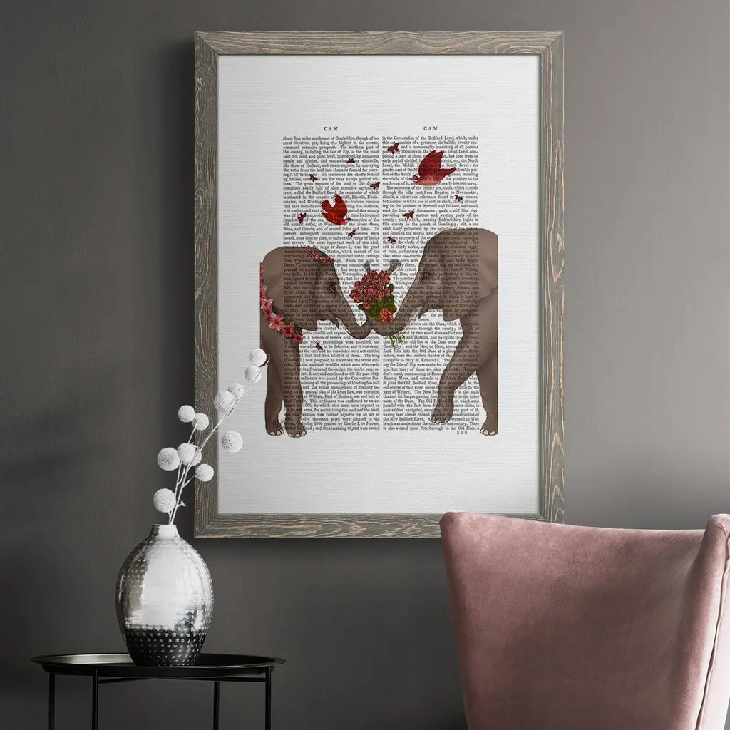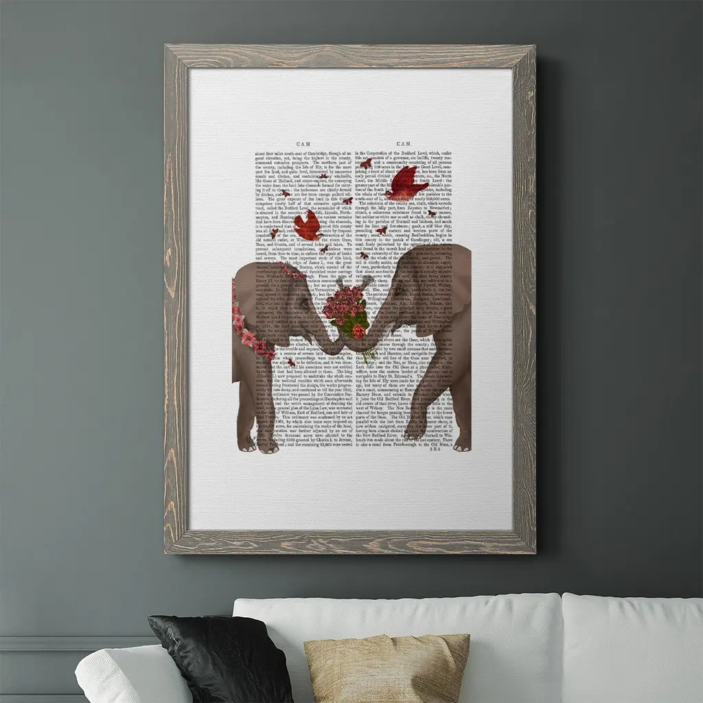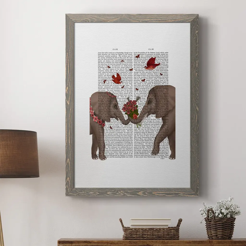Elephant Bouquet, Portrait-Premium Framed Canvas - Ready To Hang - 27.5x37.5 - Grey