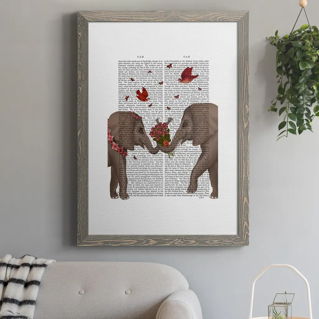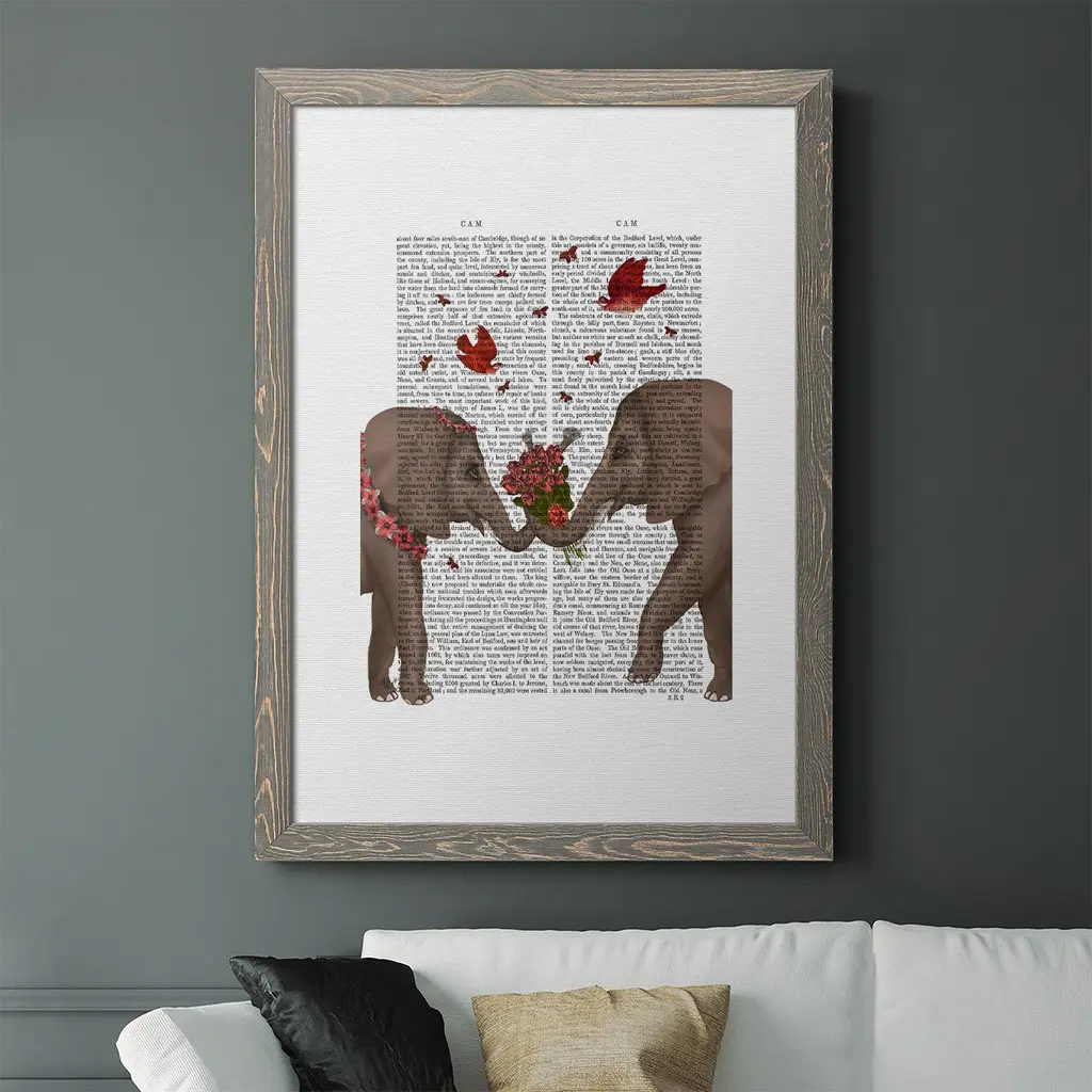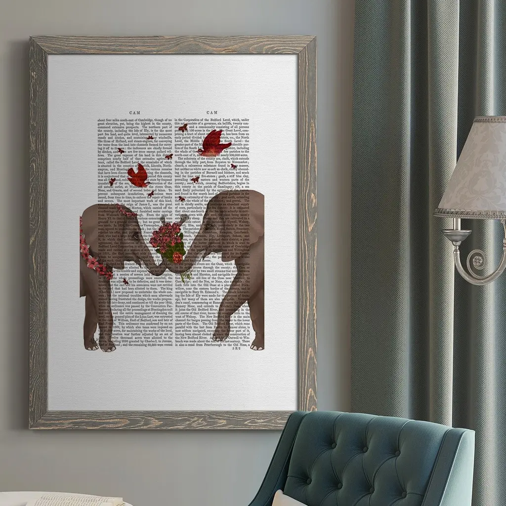 Elephant Bouquet, Portrait-Premium Framed Canvas - Ready To Hang - 27.5x37.5 - Walnut