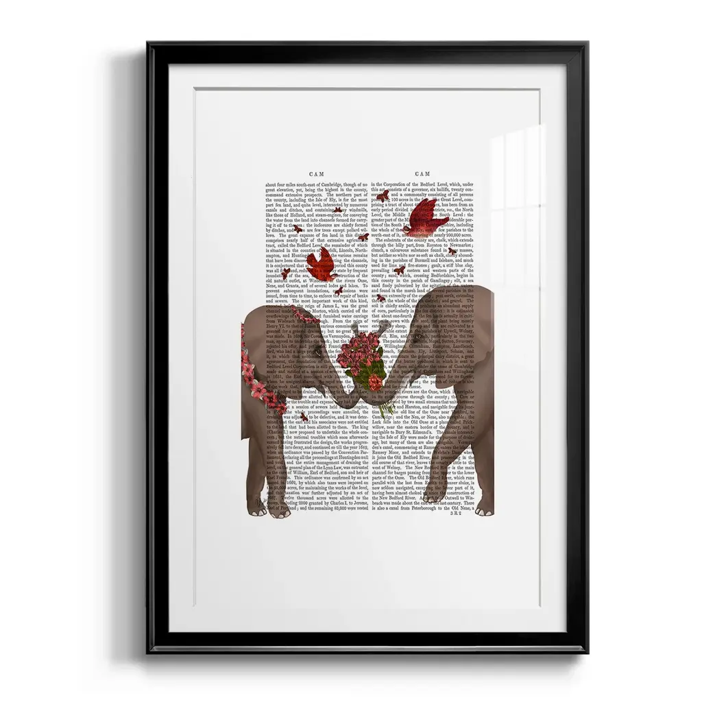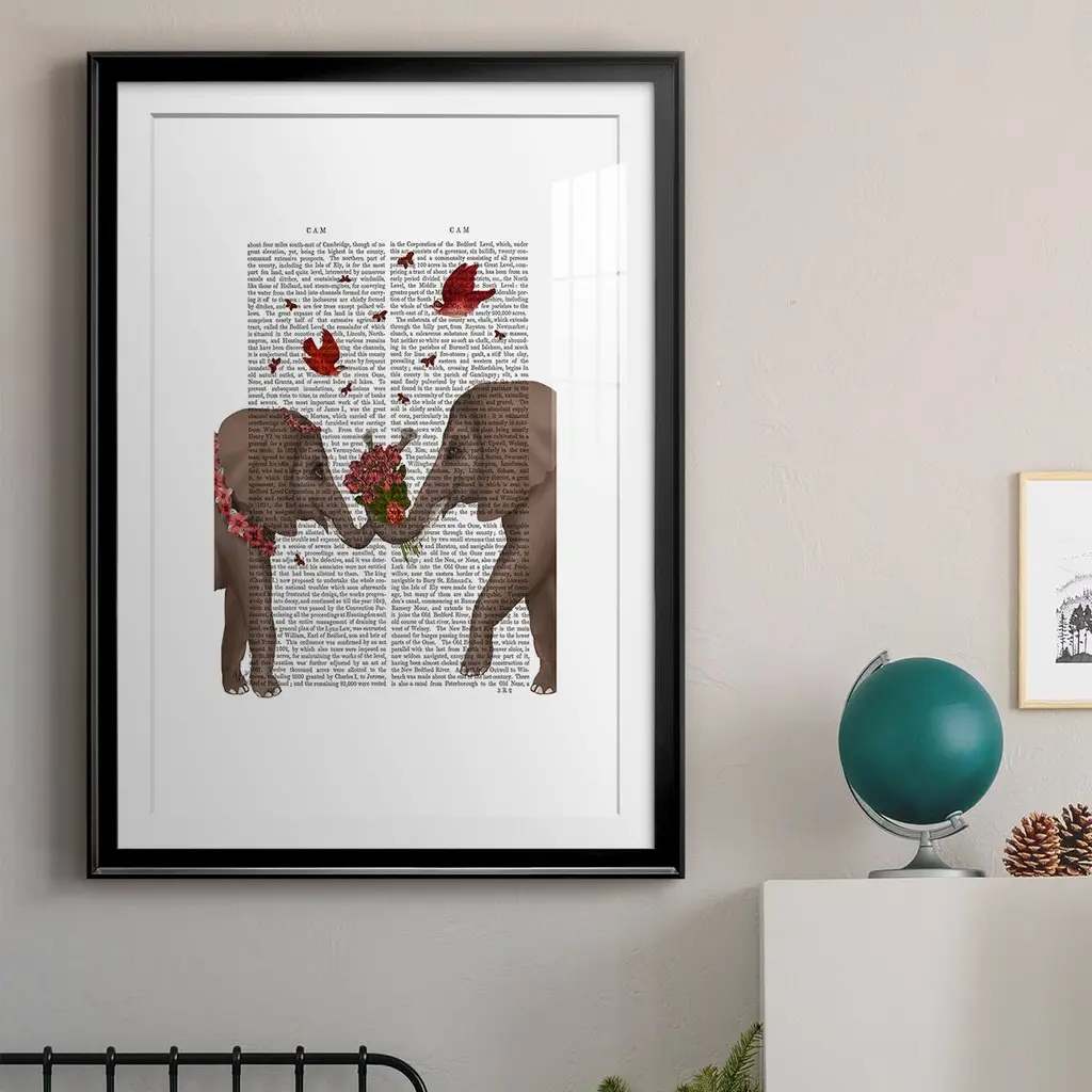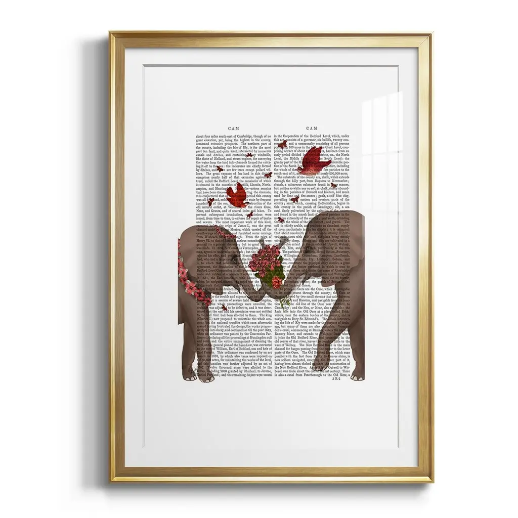 Elephant Bouquet, Portrait Premium Framed Print - Ready to Hang A Premium Framed Print created to last. Framed in distressed wood and available in an array of sizes and colors Featuring a beveled a solid wood stretcher bar, each piece comes ready to hand 4 SIZES AVAILABLE 30.5''X42.5'' - Overall Size 26.5'X36.5'' - Overall Size 22.5''x30.5'' - Overall Size 18.5''x24.5'' - Overall Size Each piece is made to order. Each piece comes with hanging hardware. Made in the USA Ready to Hang Giclee Paper Print Acrylic Glass Beveled Matt Board