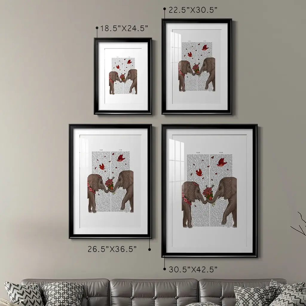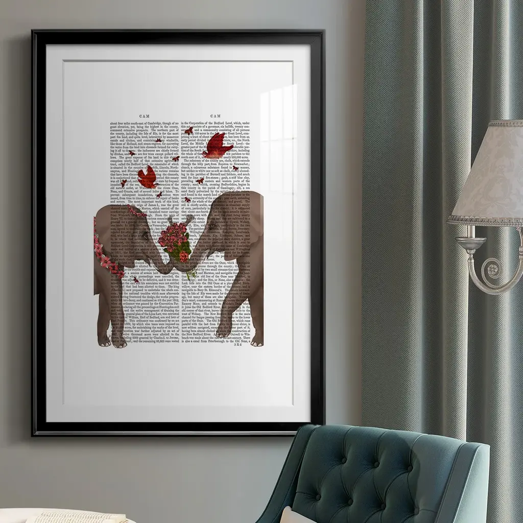 Elephant Bouquet, Portrait Premium Framed Print - Ready to Hang A Premium Framed Print created to last. Framed in distressed wood and available in an array of sizes and colors Featuring a beveled a solid wood stretcher bar, each piece comes ready to hand 4 SIZES AVAILABLE 30.5''X42.5'' - Overall Size 26.5'X36.5'' - Overall Size 22.5''x30.5'' - Overall Size 18.5''x24.5'' - Overall Size Each piece is made to order. Each piece comes with hanging hardware. Made in the USA Ready to Hang Giclee Paper Print Acrylic Glass Beveled Matt Board