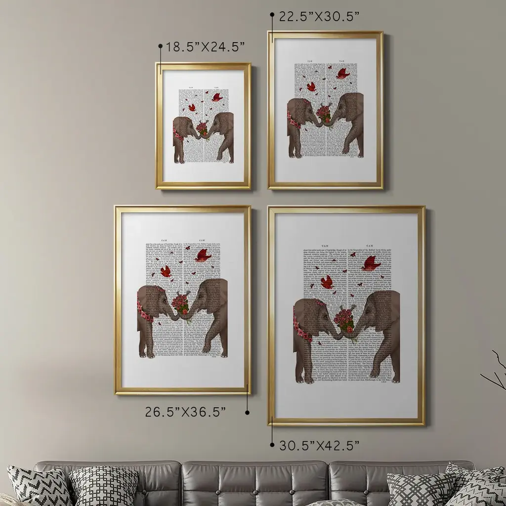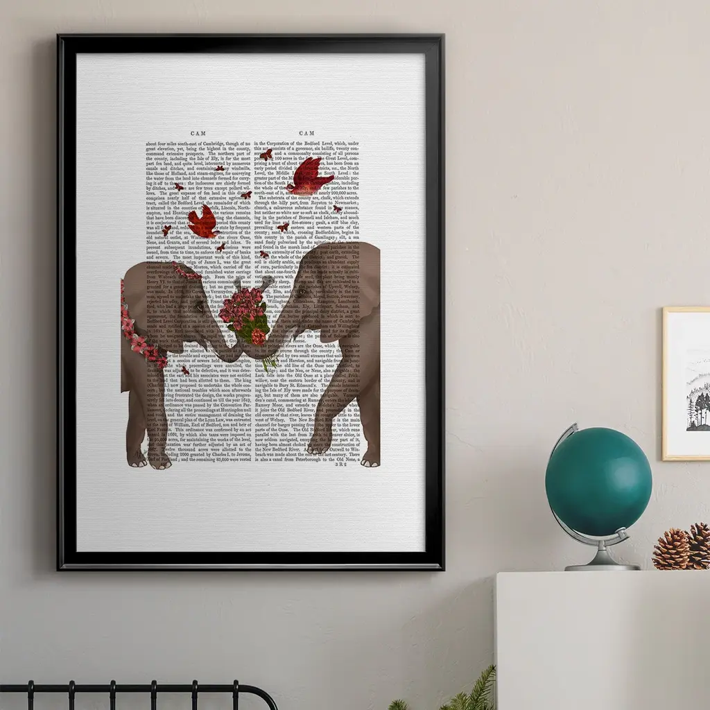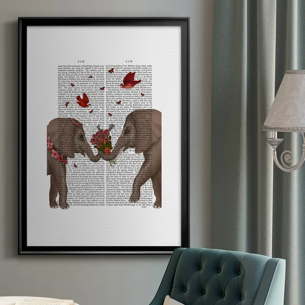 Elephant Bouquet, Portrait Premium Framed Print - Ready to Hang A Premium Framed Print created to last. Framed in distressed wood and available in an array of sizes and colors Featuring a beveled a solid wood stretcher bar, each piece comes ready to hand 4 SIZES AVAILABLE 30.5''X42.5'' - Overall Size 26.5'X36.5'' - Overall Size 22.5''x30.5'' - Overall Size 18.5''x24.5'' - Overall Size Each piece is made to order. Each piece comes with hanging hardware. Made in the USA Ready to Hang