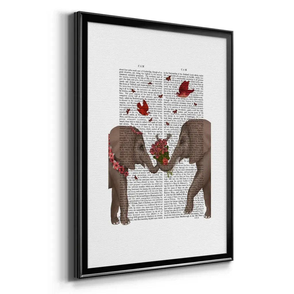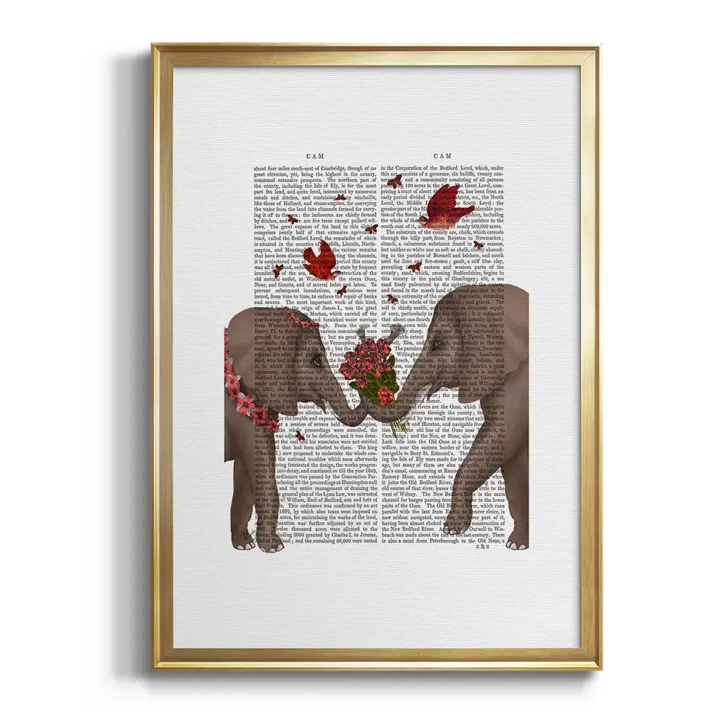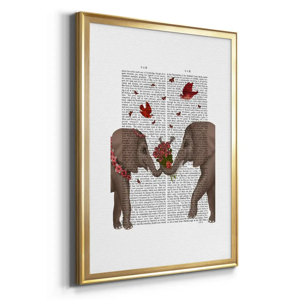 Elephant Bouquet, Portrait Premium Framed Print - Ready to Hang A Premium Framed Print created to last. Framed in distressed wood and available in an array of sizes and colors Featuring a beveled a solid wood stretcher bar, each piece comes ready to hand 4 SIZES AVAILABLE 30.5''X42.5'' - Overall Size 26.5'X36.5'' - Overall Size 22.5''x30.5'' - Overall Size 18.5''x24.5'' - Overall Size Each piece is made to order. Each piece comes with hanging hardware. Made in the USA Ready to Hang