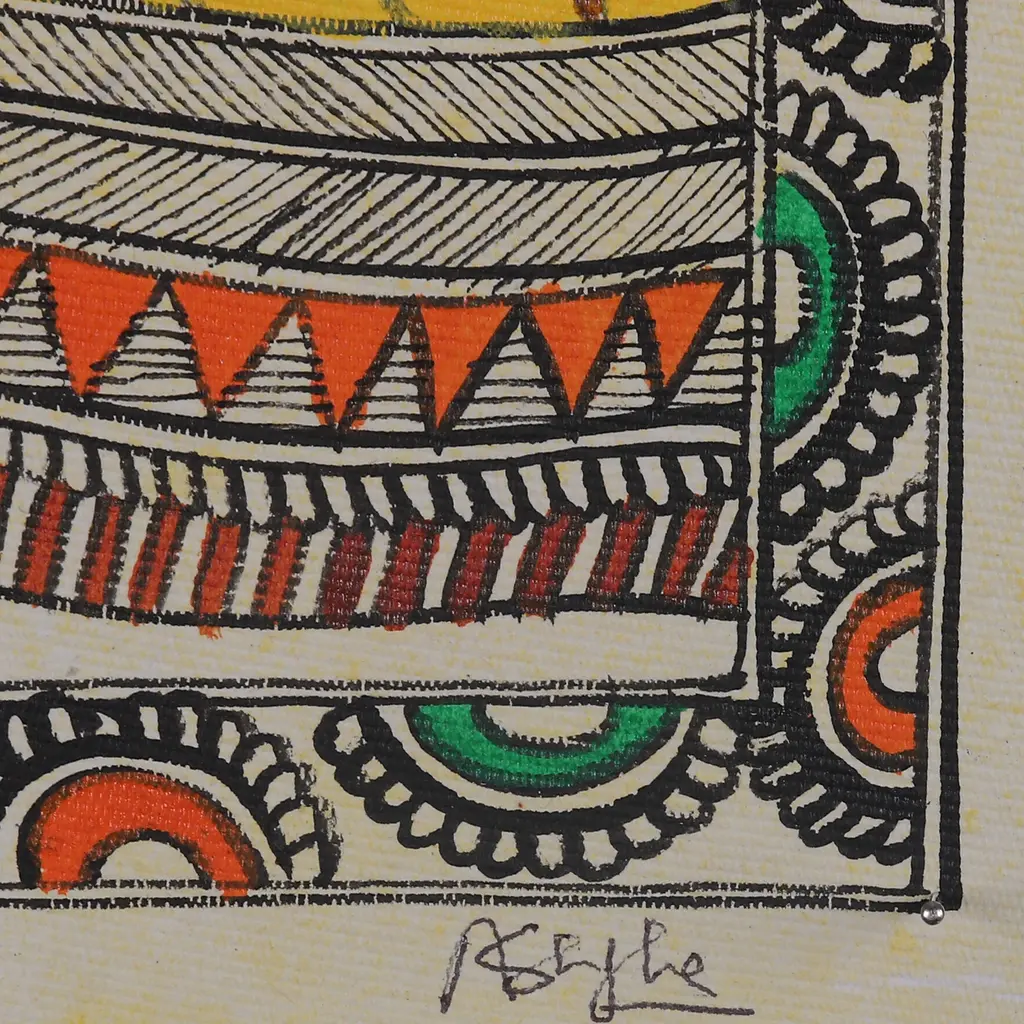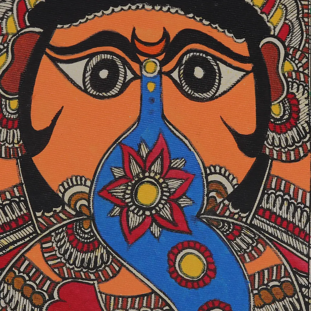 Elephant-Headed Hindu God Ganesha-Themed Madhubani Painting- Divine Ganesha