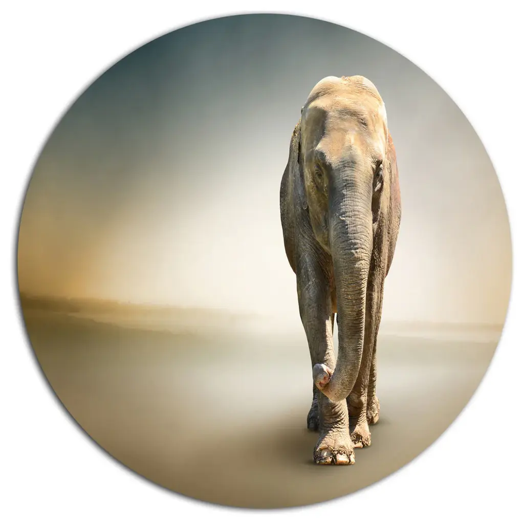 Bring Contemporary Abstraction to your home with this large Circle Metal wall art. This Elephant Mother and Baby Outdoors Metal Artwork makes it the focal point of any room or office. - White Gloss Coating ensures colors are extra vibrant with light reflection.- Aluminum grade Sheet Metal with 1 inch mounting frame on the back giving the illusion that the artwork is floating on the wall..- Mounting Brackets are included along with instructions.- High Quality Digital images are created directly into a glossy aluminum panel producing a stunning and captivating print into the glossy finish of the metal.- Water, Fire and Scratch resistant HD Aluminum panels.- Looks better than any photo paper and guaranteed to last at least 20 years- Easy to clean with a microfiber cloth. Colors are far superior to regular Canvas Art. - Easy to Hang