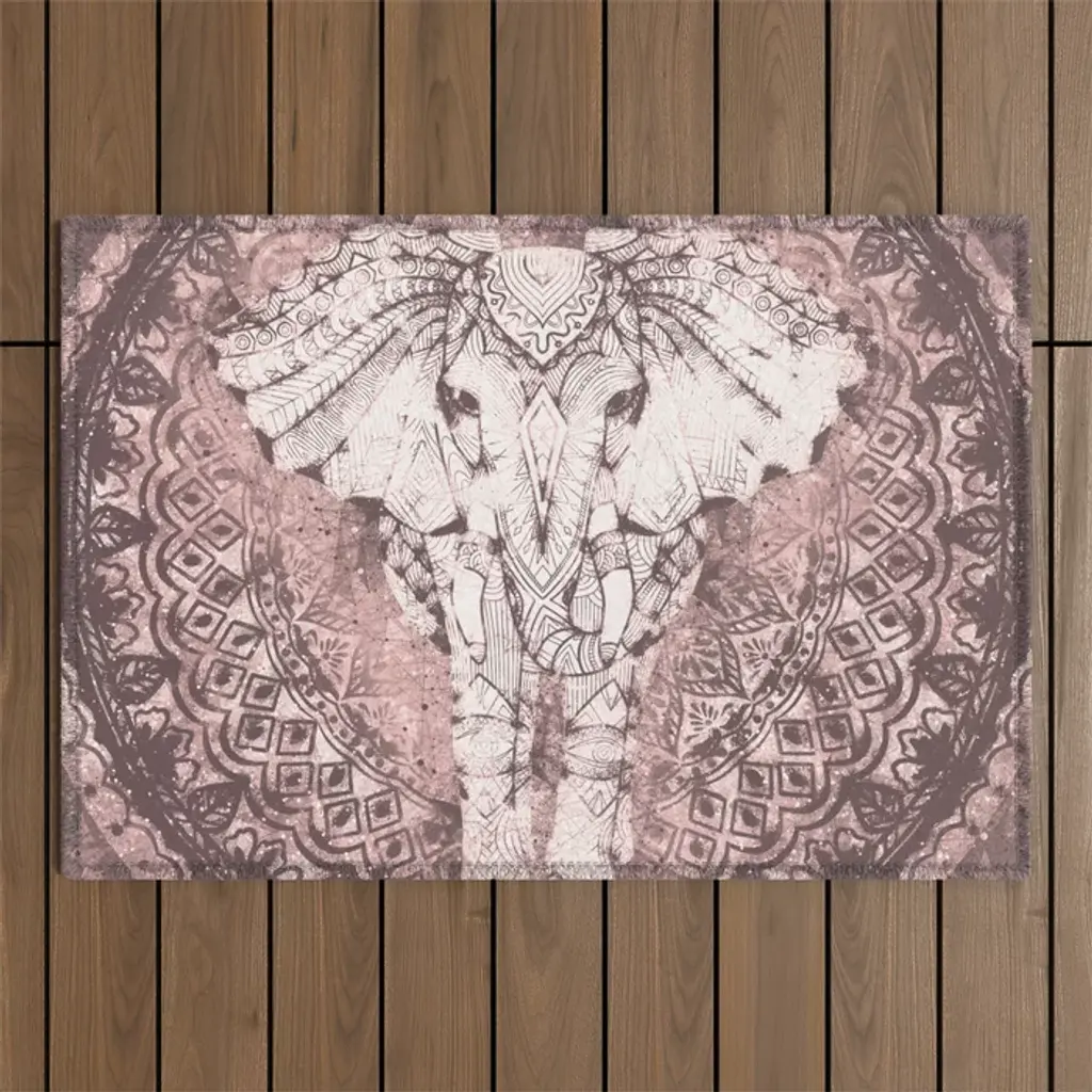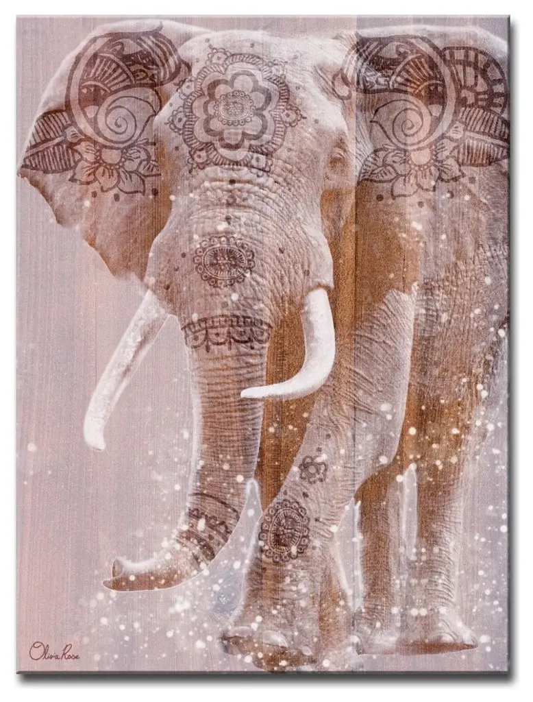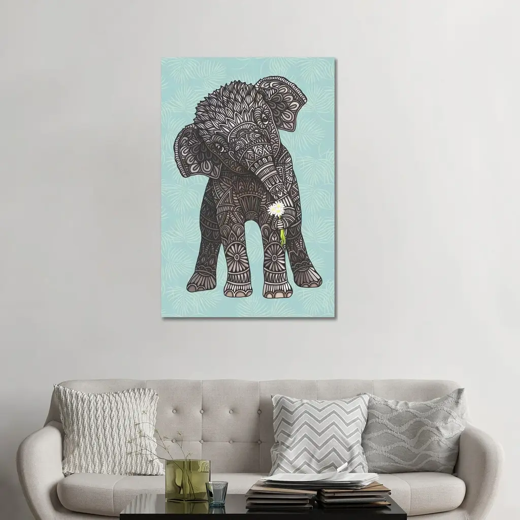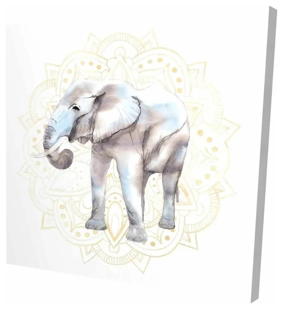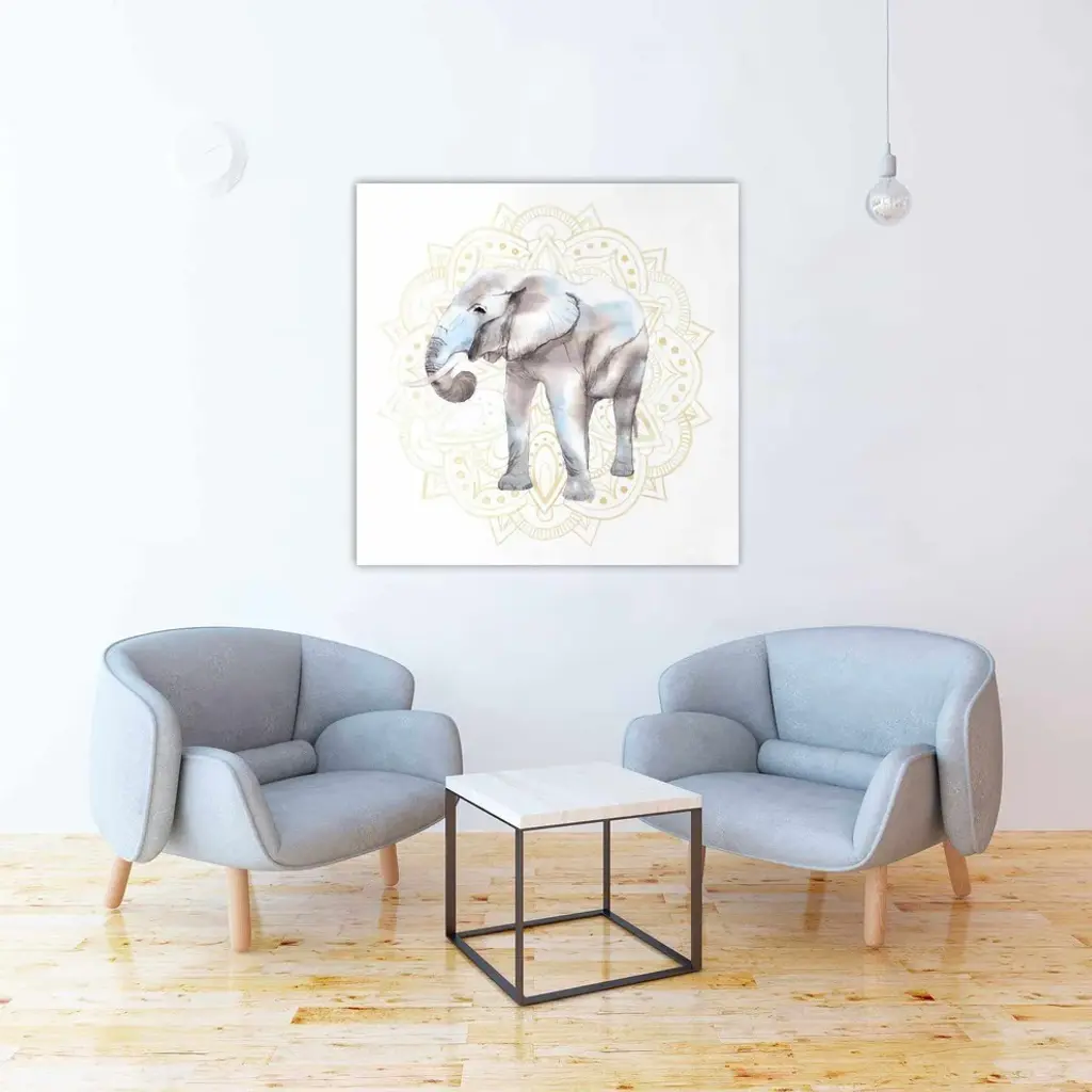 Elephant On Mandalas Patern Print On Wrapped Canvas, 36"x36"