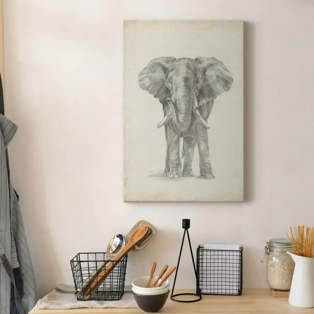 Elephant Sketch II Premium Gallery Wrapped Canvas - Ready to Hang A premium hand stretched gallery wrapped canvas print created to last. Featuring a beveled a solid wood stretcher bar, each piece comes ready to hand 5 SIZES AVAILABLE 8''X12'' - Overall Size 16'X20'' - Overall Size 24''x32'' - Overall Size 30''x40'' - Overall Size 36''x48'' - Overall Size Each piece is made to order. Built to Last Each piece comes ready to hang Solid wood stretcher Fade and Water resistant Made domestically
