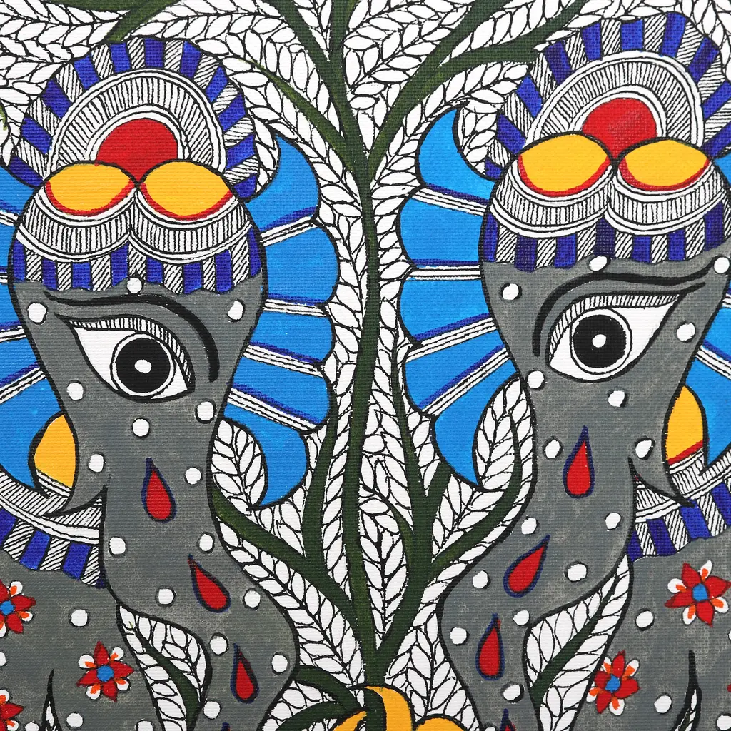 Elephant-Themed Acrylic On Handmade Paper Madhubani Painting- Forever Friends