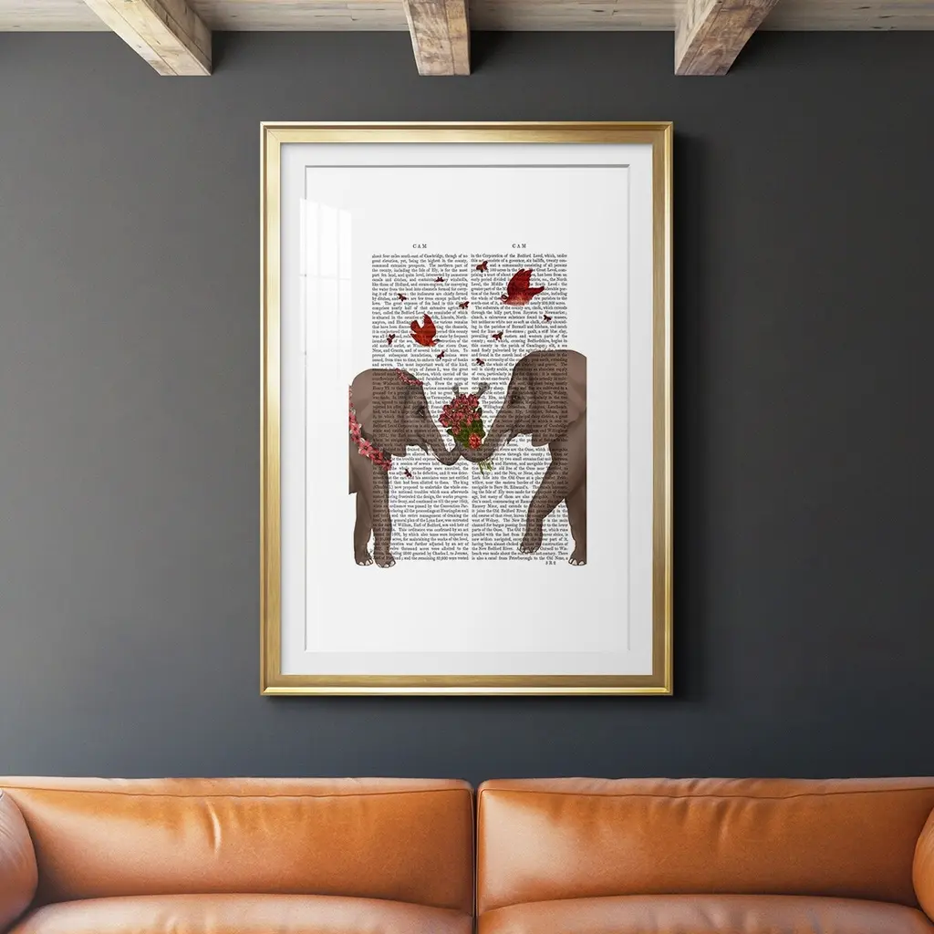 Elephants Heart and Rose Premium Framed Print - Ready to Hang A Premium Framed Print created to last. Framed in distressed wood and available in an array of sizes and colors Featuring a beveled a solid wood stretcher bar, each piece comes ready to hand 4 SIZES AVAILABLE 30.5''X42.5'' - Overall Size 26.5'X36.5'' - Overall Size 22.5''x30.5'' - Overall Size 18.5''x24.5'' - Overall Size Each piece is made to order. Each piece comes with hanging hardware. Made in the USA Ready to Hang Giclee Paper Print Acrylic Glass Beveled Matt Board