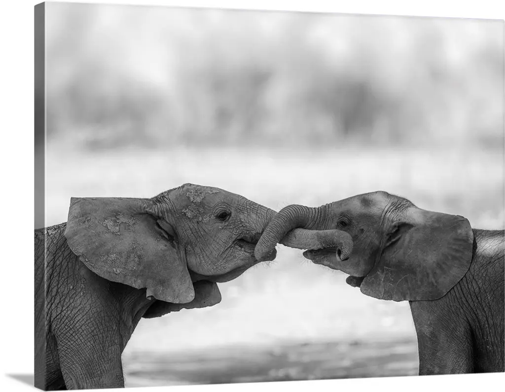 Elephants Showing Affection, Animal Round Wall Art, 11"