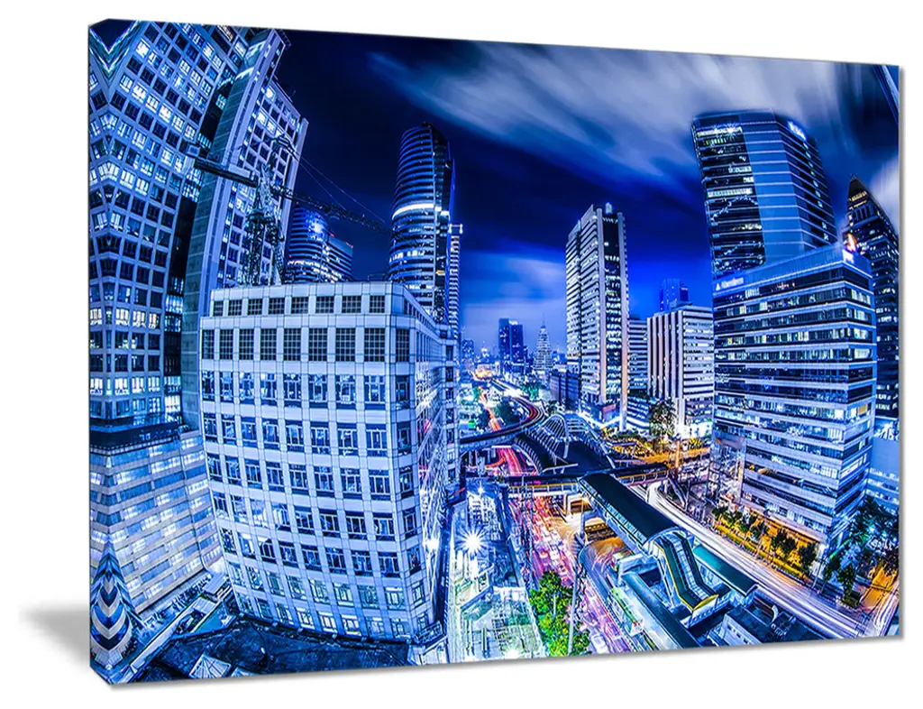 Elevated Business Buildings, Large Cityscape Canvas Art Print, 60x40