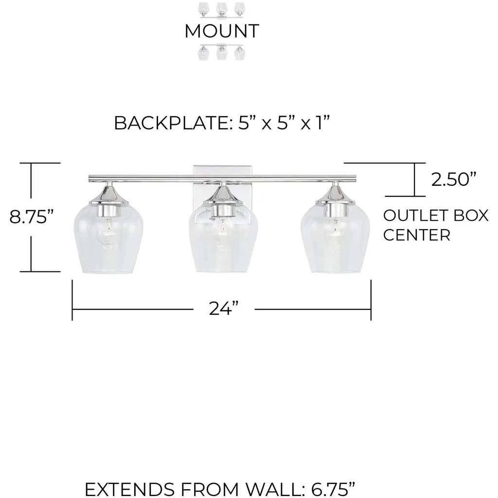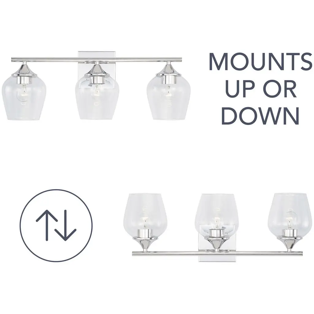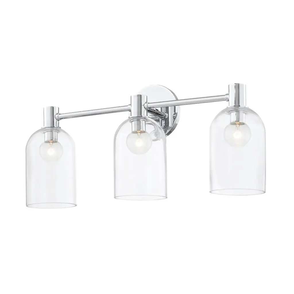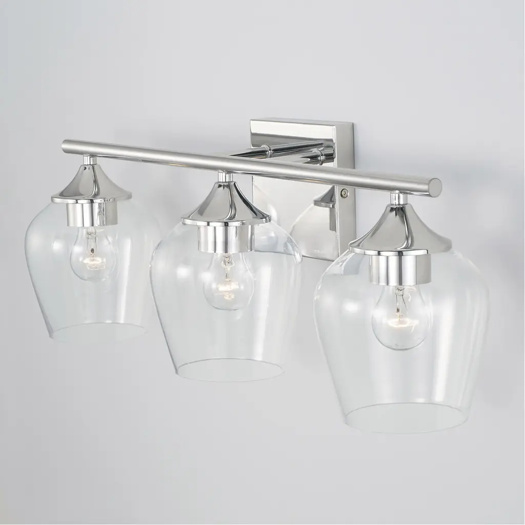This 3-Light Vanity is pretty and practical. The Chrome finish adds a reflective layer to the playful silhouette of the clear glass shades.