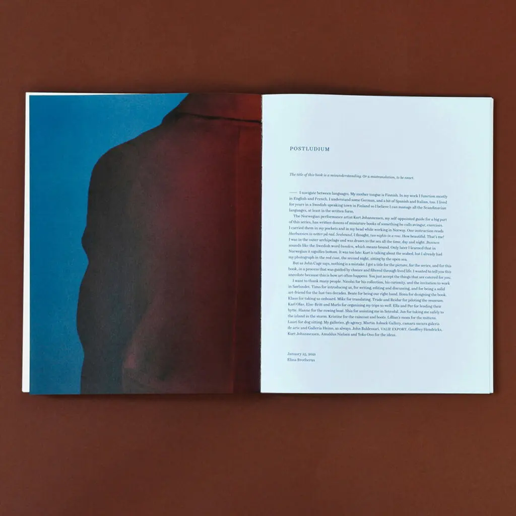 Published by Kehrer Verlag, Elina Brotherus: Seabound, A Logbook is a photo book that takes you on a journey into the breathtaking landscapes of the Norwegian coast. In the images by the award-winning Finnish photographer Elina Brotherus, human figures merge with the landscape in various fascinating ways. The photographs are complemented by texts written by Elina Brotherus, Nicolai Tangen and Timo Valjakka. The Finnish Book Art Committee chose Seabound as one of the most beautiful books of 2021. Sørlandet, »the Southland«, is the southernmost tip of Norway. Some call it the »Norwegian Riviera«. Going north, the rocky archipelago soon gives way to granitic mountains and mountain valleys. Yet, the sea is never far – Norway has the longest coastline in Europe. Elina Brotherus’ (b. 1972 in Helsinki) photographic practice is based on making visual discoveries. When she finds a place that pleases her, she starts to play with the human figure, trying to incorporate it in the image in an intriguing way. Brotherus has a habit of using art history, and in Sørlandets Kunstmuseum’s collection she found entry points for this new body of work: some pieces are based on 19th century Romantic paintings, yet others on performative scores, i.e. by Yoko Ono, Geoffrey Hendricks, VALIE EXPORT, John Baldessari, or the Norwegian performance artist Kurt Johannesen. Seabound is her eleventh monograph.