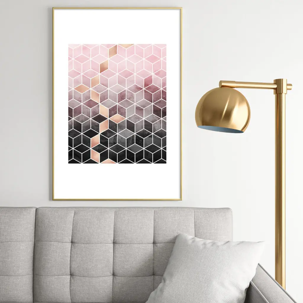 Elisabeth Fredriksson Pink Grey Gradient Cubes Metal Framed Art Print