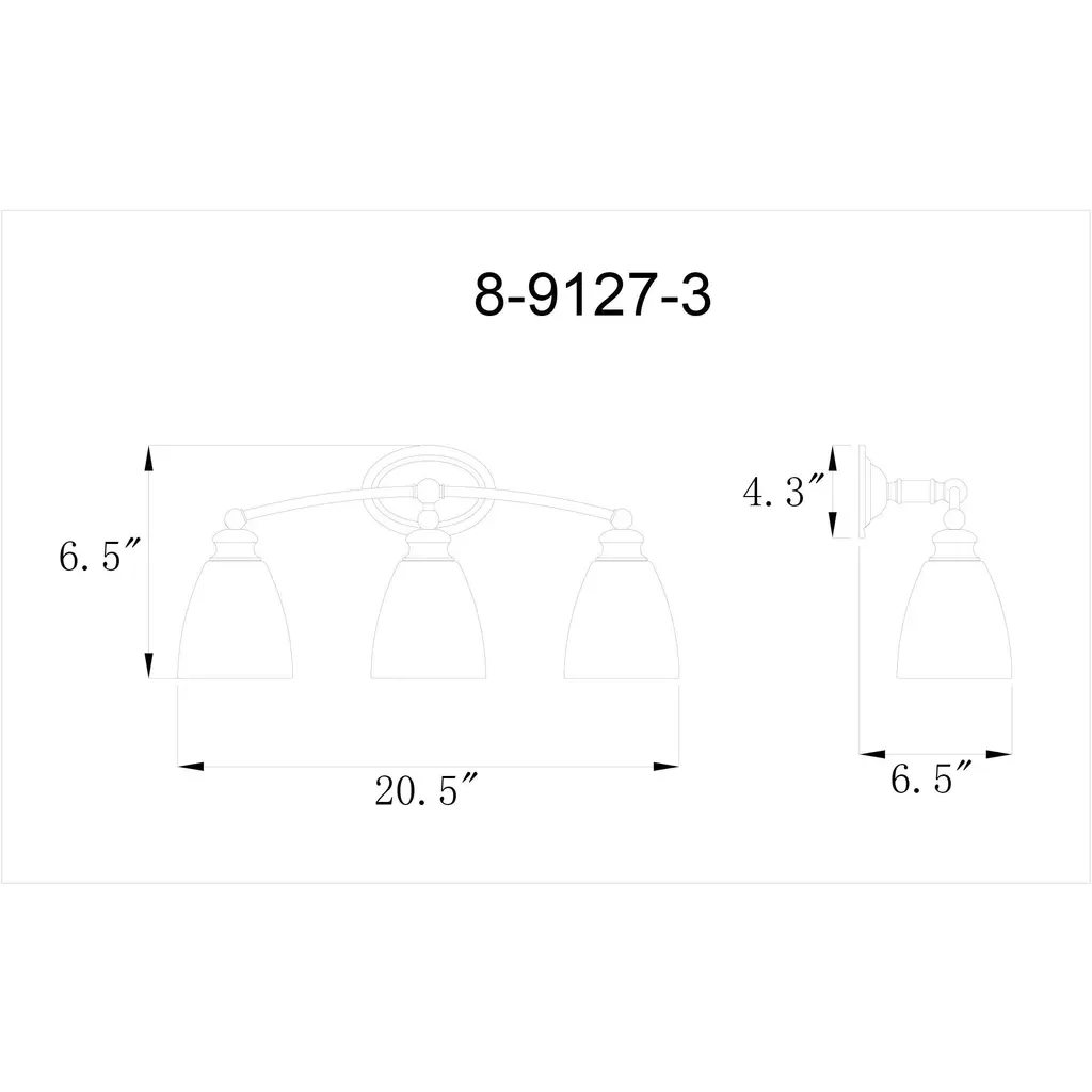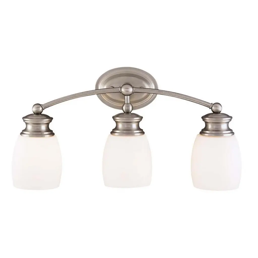 You want to feel comfortable when you step up to the vanity mirror and thats exactly what happens with the Savoy House Elise. The traditional style is clean-lined and familiar and the light is flattering without any glare. The round wall plate holds sturdy arms that have decorative yet unfussy detailing and are finished in polished nickel. Tapered cylindrical shades of frosted opal glass surround three 60W standard size bulbs. The bath light is 20.5" wide, 11" high and UL rated for damp locations. It may be mounted as uplight or downlight, creating the perfect fixture for luxurious, inviting style in your bathroom or powder room.