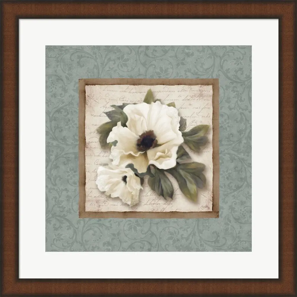 Silversage Flower I by Elizabeth Medley is a high quality piece of framed artwork. The finished size of this piece is 19.75" X 19.75". It has a Slim Teak Espresso Brown Edges frame, is single matted and finished with high quality Glass. 100% Satisfaction Guaranteed.
