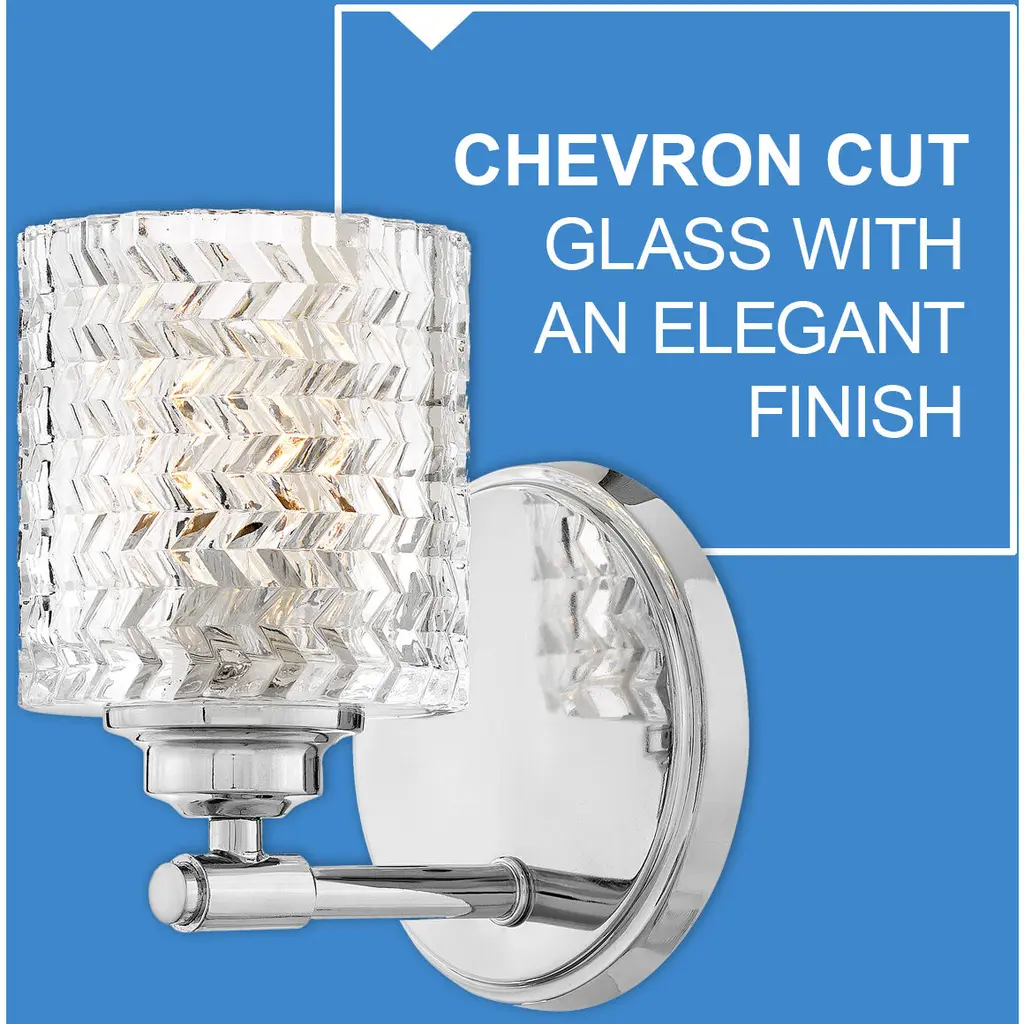 Traditional elegance with a modern edge defines Elle's graceful design. A rich, chevron cut, clear glass is the dramatic focal point, complemented by a gleaming Chrome finish. The softly rounded steel back plate is finished with luxe stepped detailing to complete the design.