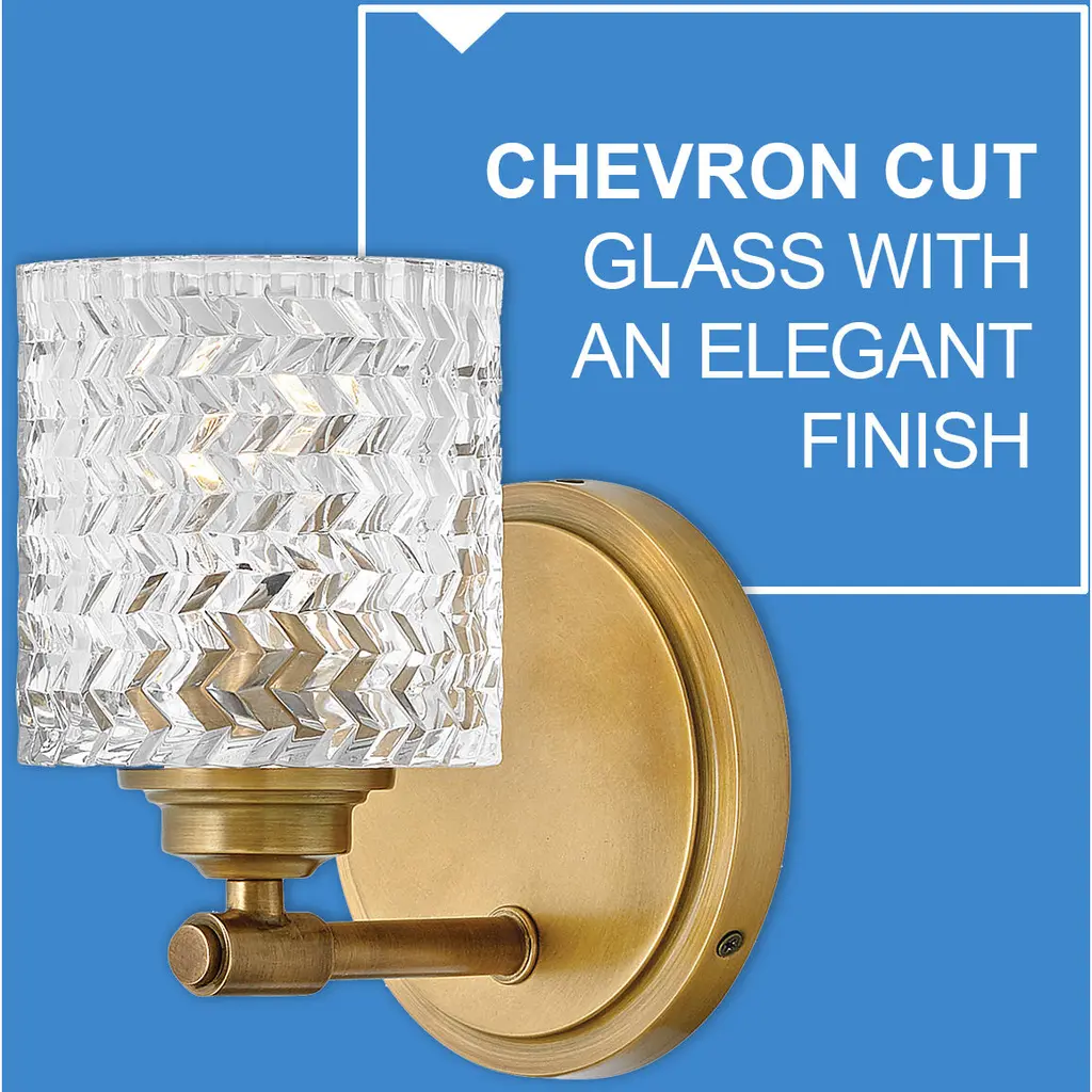 Traditional elegance with a modern edge defines Elle's graceful design. A rich, chevron cut, clear glass is the dramatic focal point, complemented by a gleaming Chrome finish. The softly rounded steel back plate is finished with luxe stepped detailing to complete the design.