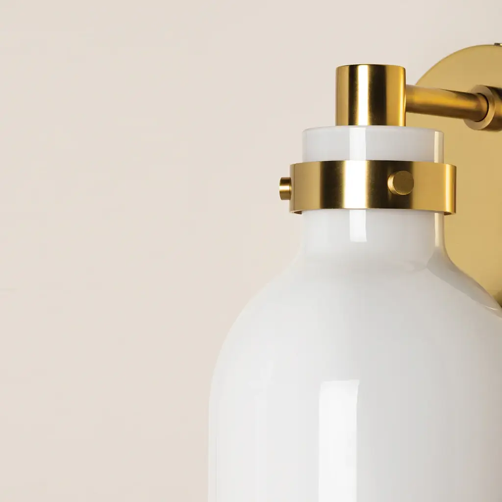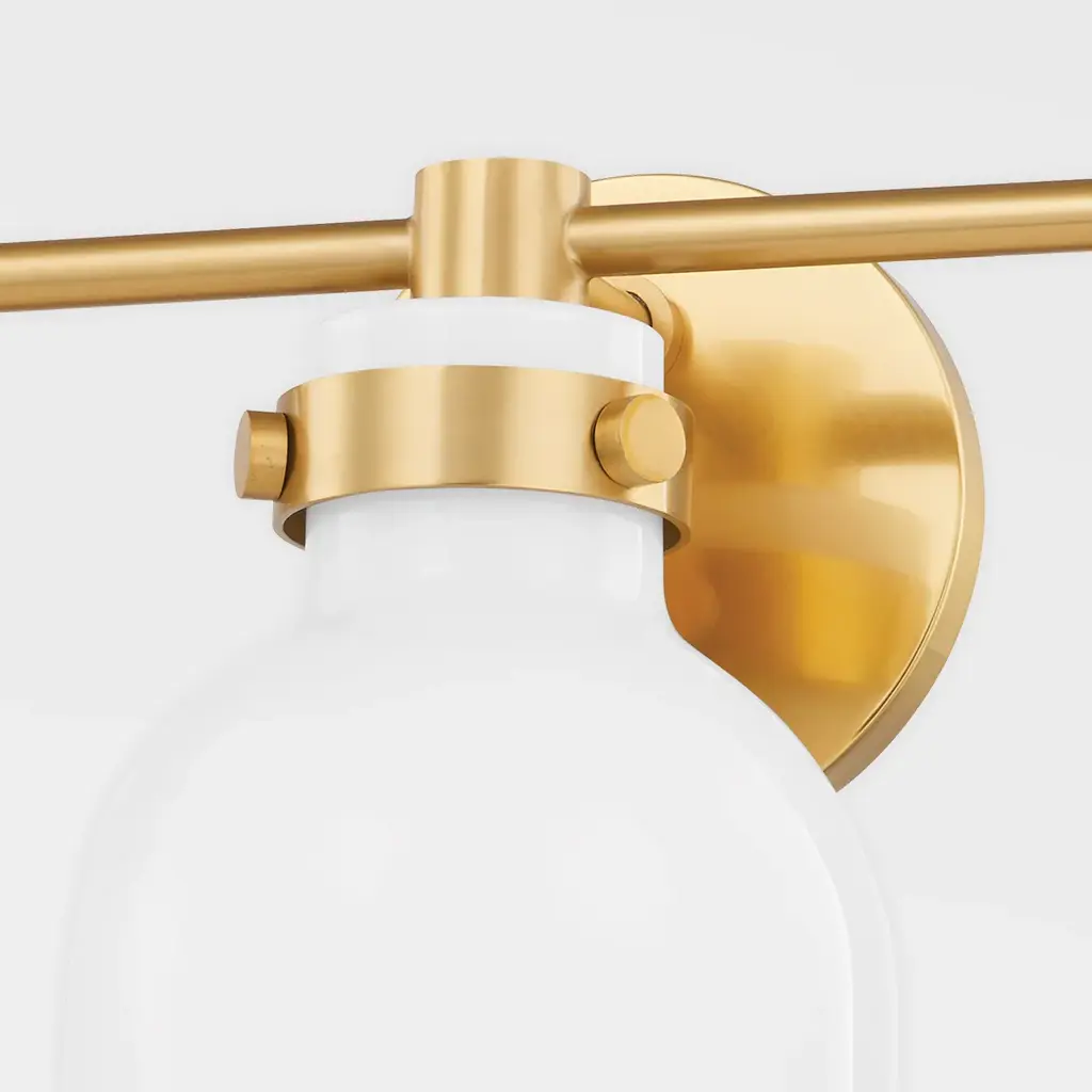 Elegant and effortless, the Elli Bathroom Vanity Light from Hudson Valley Lighting provides tasteful illumination for any bathroom. The bell-shaped shades in opal shiny glass diffuse the light, while vintage-inspired glass fitters and thick cylindrical accents add a sophisticated touch. Available in aged brass or polished nickel, Elli is the perfect addition for any discerning home. Highlights