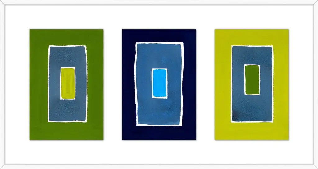 Selection of Ellsworth Kelly color lithographs, French, circa 1960s. They are from the limited edition folio “Derriere le Miroir”, published by the legendary Galerie Maeght, circa 1960s. Please see our other 1stdibs listings for more Ellsworth Kelly works from the same estate. They have been recently framed in clean lined white lacquered wood gallery frames under UV resistant glass. They are priced at $650 each.
