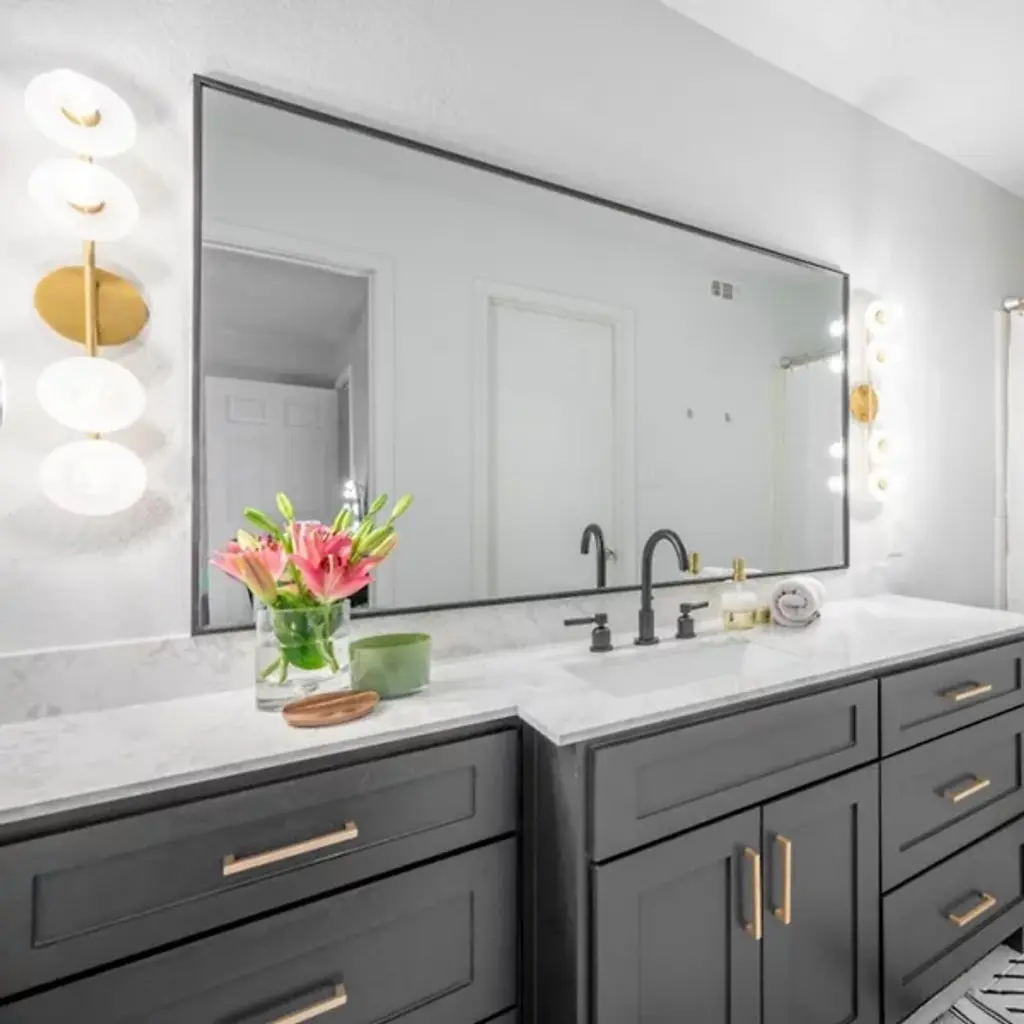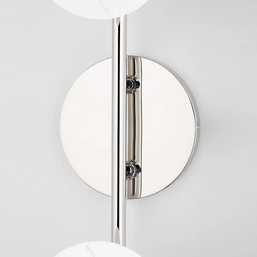 Elevate the décor of your favorite bathroom space with the Elmont Vanity Light from Hudson Valley Lighting. A simple, yet elegant design, this modern piece mounts directly to the wall with a rounded plate made of smooth metal. A horizontal bar connects to this backplate and upholds a series of circular shades, each adorned with an additional layer of clean alabaster. The alabaster contains unique veining for added visual appeal. The light from the diffusers plays with the material, creating a warm and welcoming layer of light that completes the ambiance of the space.