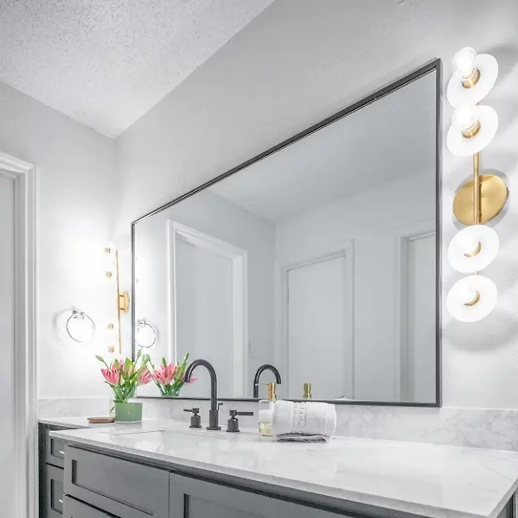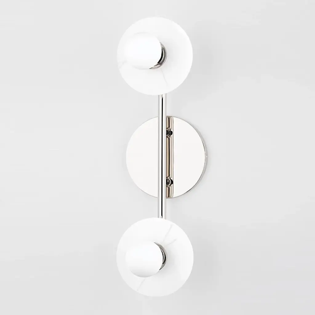 Elevate the décor of your favorite bathroom space with the Elmont Vanity Light from Hudson Valley Lighting. A simple, yet elegant design, this modern piece mounts directly to the wall with a rounded plate made of smooth metal. A horizontal bar connects to this backplate and upholds a series of circular shades, each adorned with an additional layer of clean alabaster. The alabaster contains unique veining for added visual appeal. The light from the diffusers plays with the material, creating a warm and welcoming layer of light that completes the ambiance of the space.