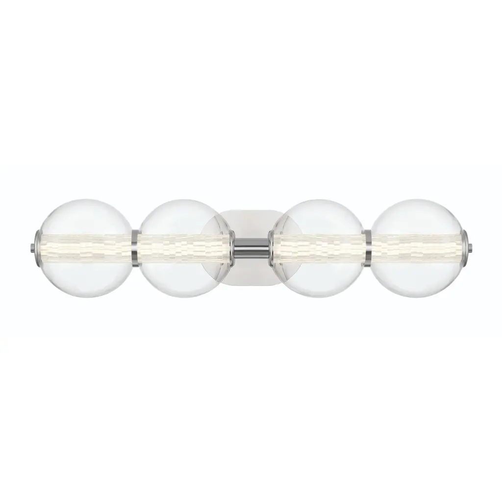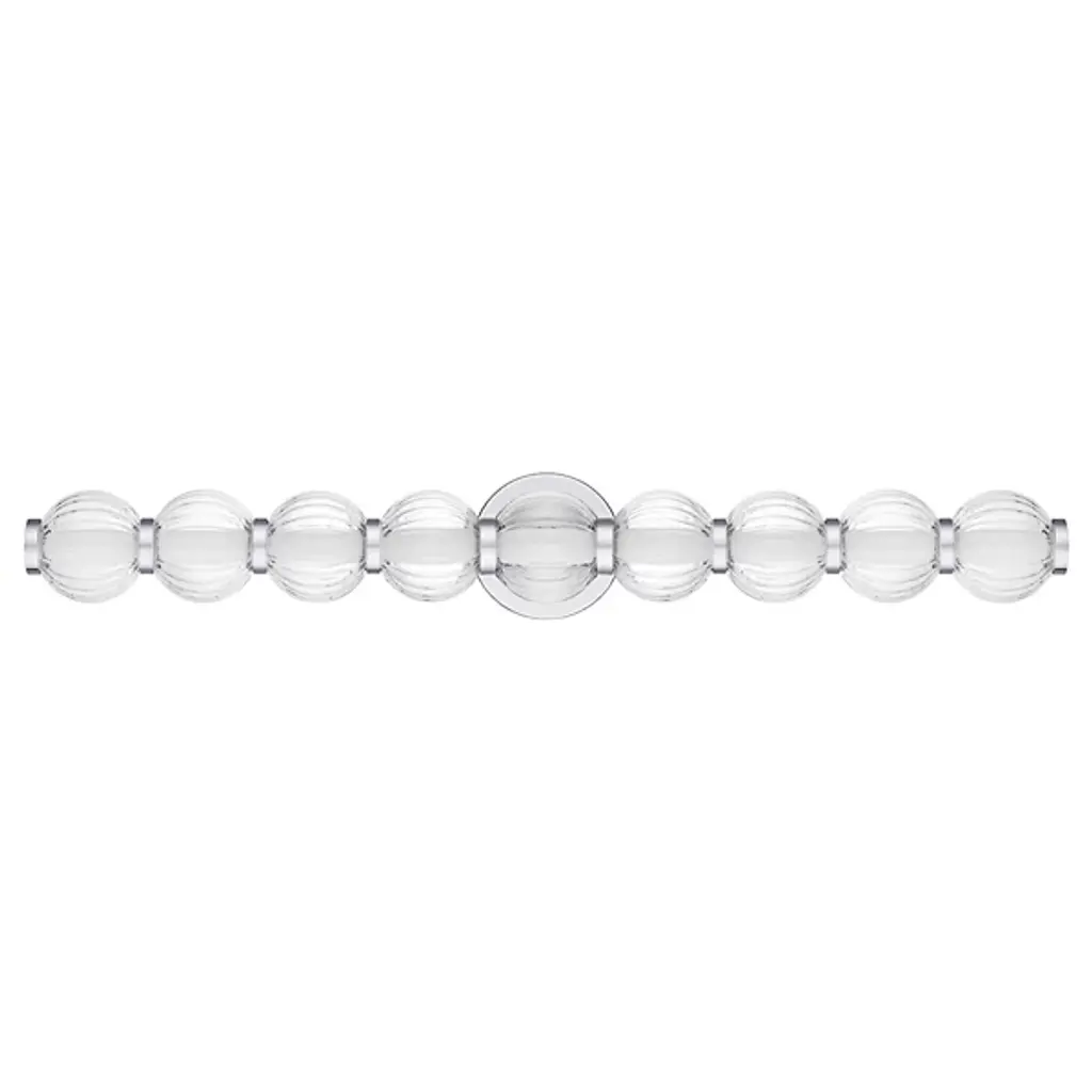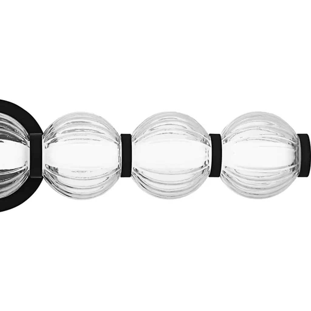 The Elway LED Vanity Light from Quoizel adopts a playful approach to bathroom lighting with its string of ribbed glass spheres that create delightful light patterns. The sturdy steel construction ensures lasting performance while integrating smoothly with diverse décor styles. This versatile fixture can be mounted horizontally or vertically according to preference, making it adaptable to different bathroom layouts. Compatible with dimming systems, it offers adjustable lighting intensity to match different times of day.