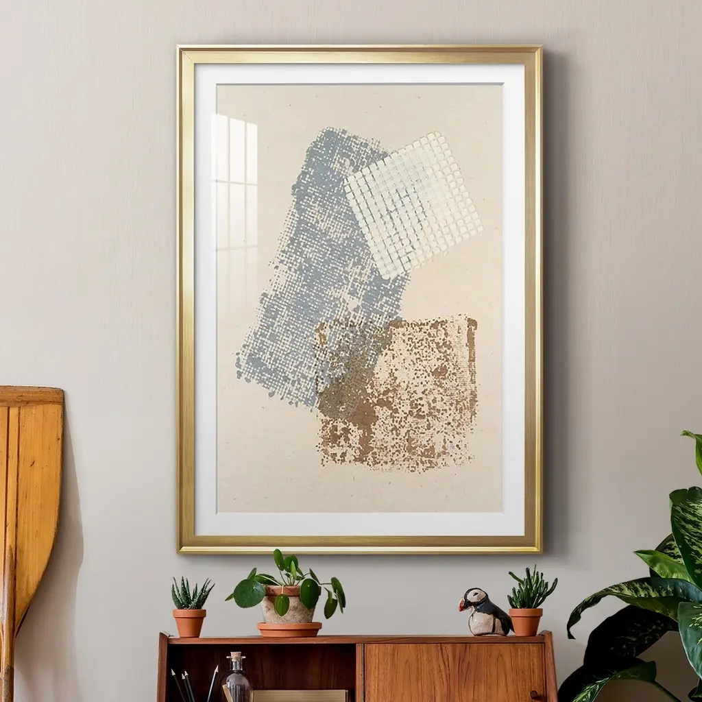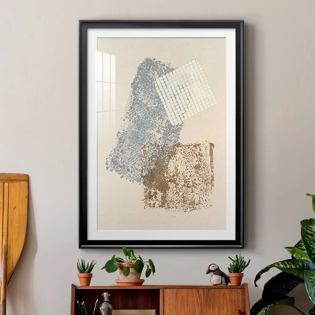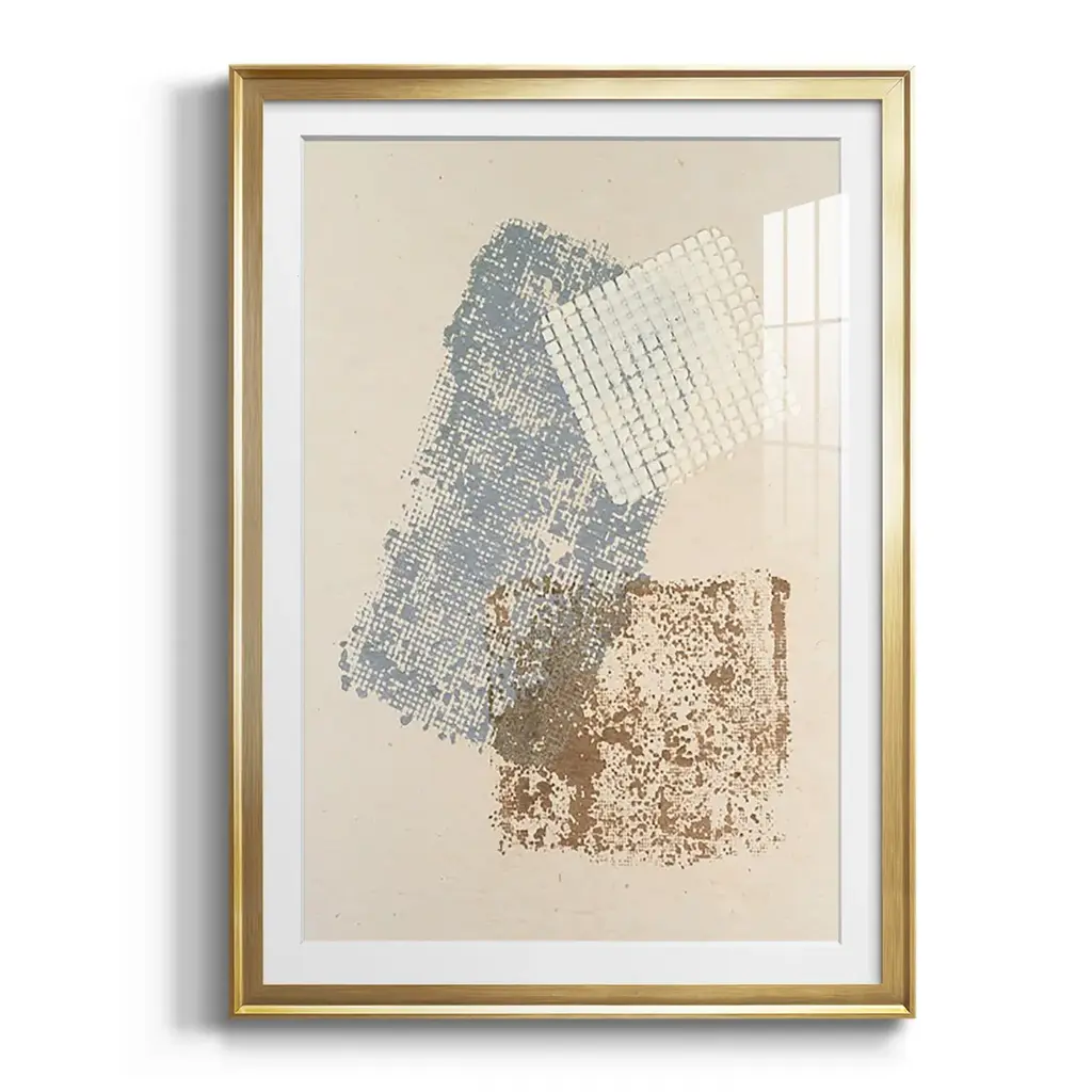Embellished Scrim I Premium Framed Print - Ready to Hang A Premium Framed Print created to last. Framed in distressed wood and available in an array of sizes and colors Featuring a beveled a solid wood stretcher bar, each piece comes ready to hand 4 SIZES AVAILABLE 30.5''X42.5'' - Overall Size 26.5'X36.5'' - Overall Size 22.5''x30.5'' - Overall Size 18.5''x24.5'' - Overall Size Each piece is made to order. Each piece comes with hanging hardware. Made in the USA Ready to Hang Giclee Paper Print Acrylic Glass Beveled Matt Board