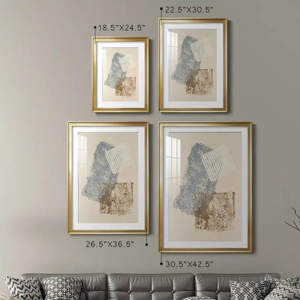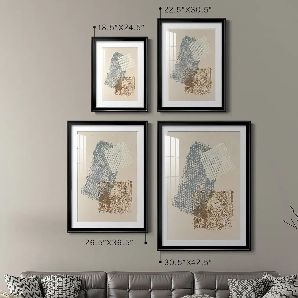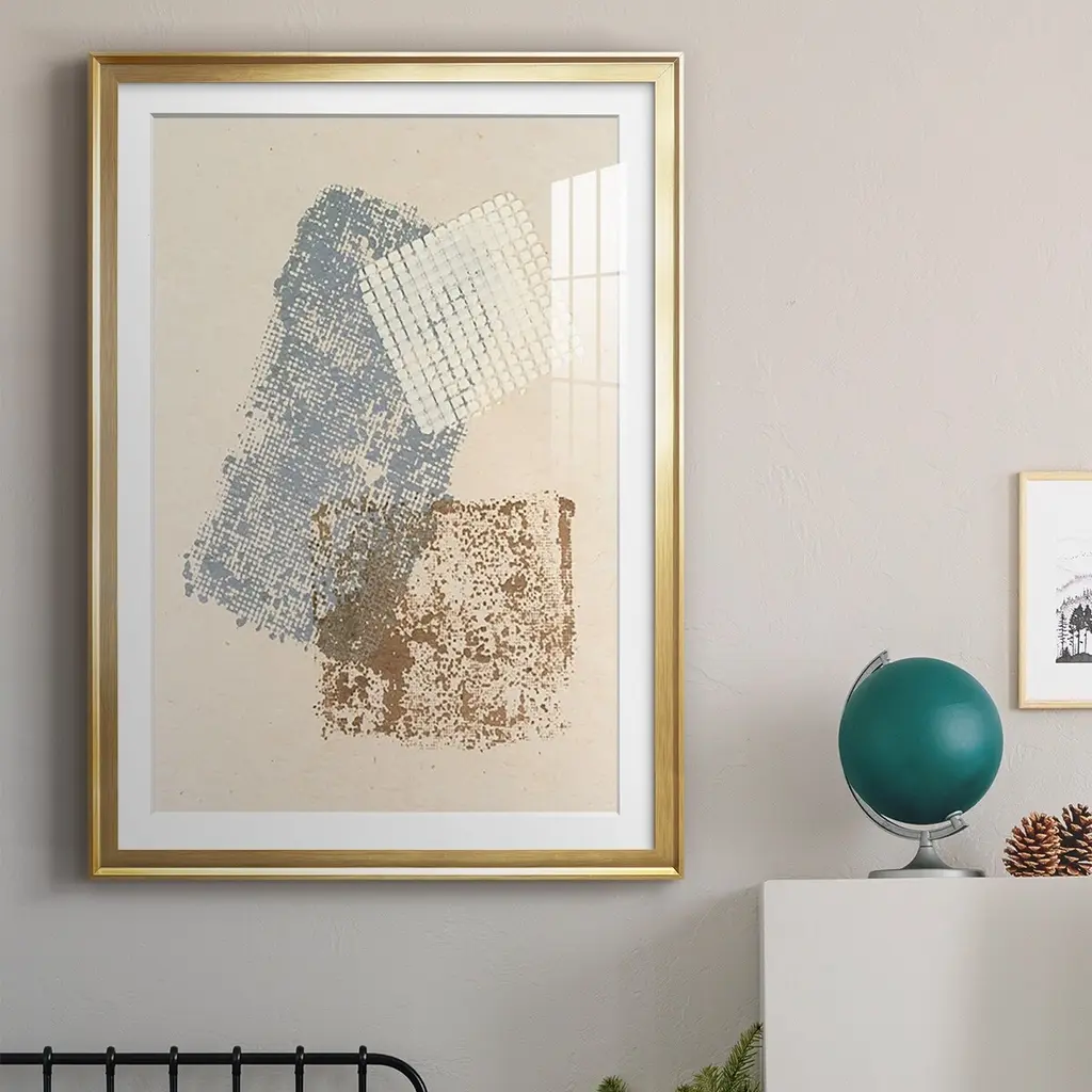 Embellished Scrim I Premium Framed Print - Ready to Hang A Premium Framed Print created to last. Framed in distressed wood and available in an array of sizes and colors Featuring a beveled a solid wood stretcher bar, each piece comes ready to hand 4 SIZES AVAILABLE 30.5''X42.5'' - Overall Size 26.5'X36.5'' - Overall Size 22.5''x30.5'' - Overall Size 18.5''x24.5'' - Overall Size Each piece is made to order. Each piece comes with hanging hardware. Made in the USA Ready to Hang Giclee Paper Print Acrylic Glass Beveled Matt Board