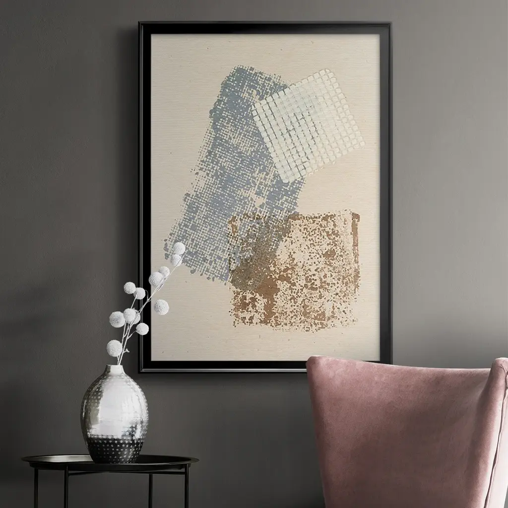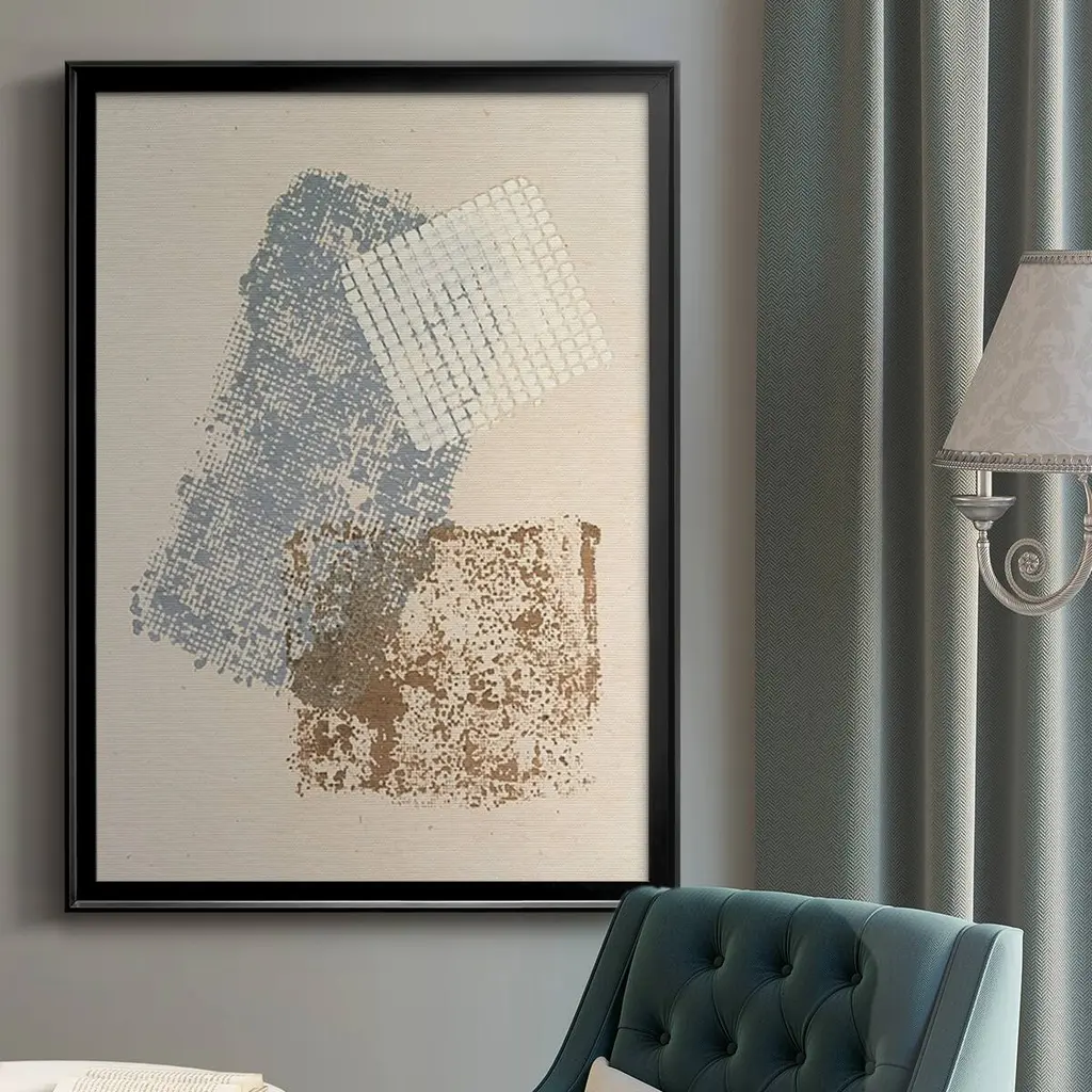 Embellished Scrim I Premium Framed Print - Ready to Hang A Premium Framed Print created to last. Framed in distressed wood and available in an array of sizes and colors Featuring a beveled a solid wood stretcher bar, each piece comes ready to hand 4 SIZES AVAILABLE 30.5''X42.5'' - Overall Size 26.5'X36.5'' - Overall Size 22.5''x30.5'' - Overall Size 18.5''x24.5'' - Overall Size Each piece is made to order. Each piece comes with hanging hardware. Made in the USA Ready to Hang