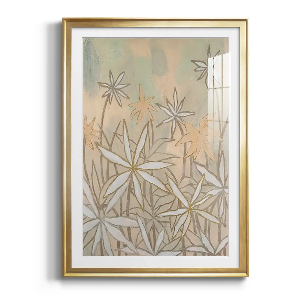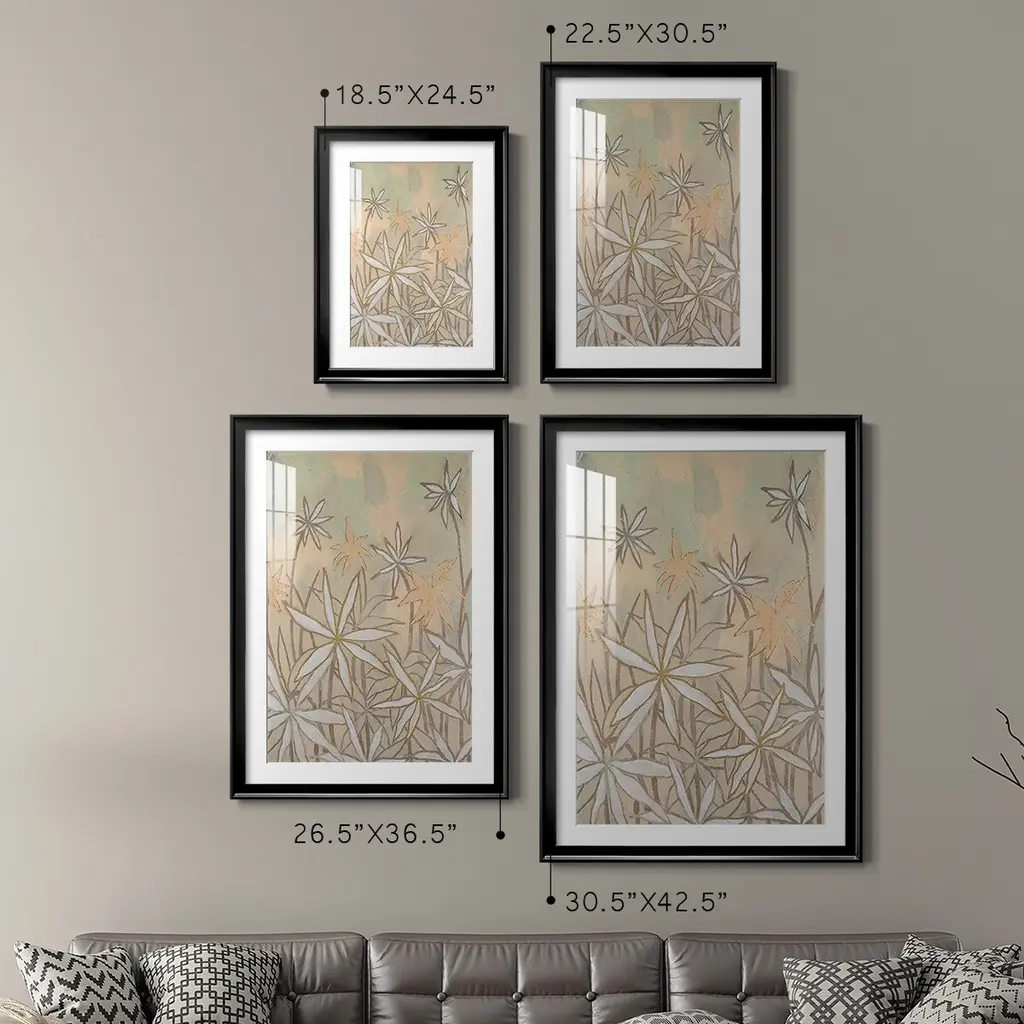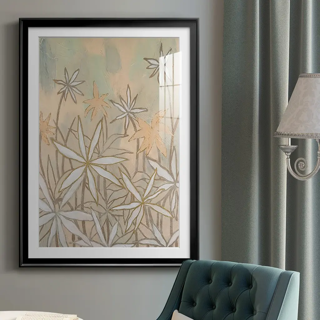 Embellished Starburst Bloom II Premium Framed Print - Ready to Hang A Premium Framed Print created to last. Framed in distressed wood and available in an array of sizes and colors Featuring a beveled a solid wood stretcher bar, each piece comes ready to hand 4 SIZES AVAILABLE 30.5''X42.5'' - Overall Size 26.5'X36.5'' - Overall Size 22.5''x30.5'' - Overall Size 18.5''x24.5'' - Overall Size Each piece is made to order. Each piece comes with hanging hardware. Made in the USA Ready to Hang Giclee Paper Print Acrylic Glass Beveled Matt Board