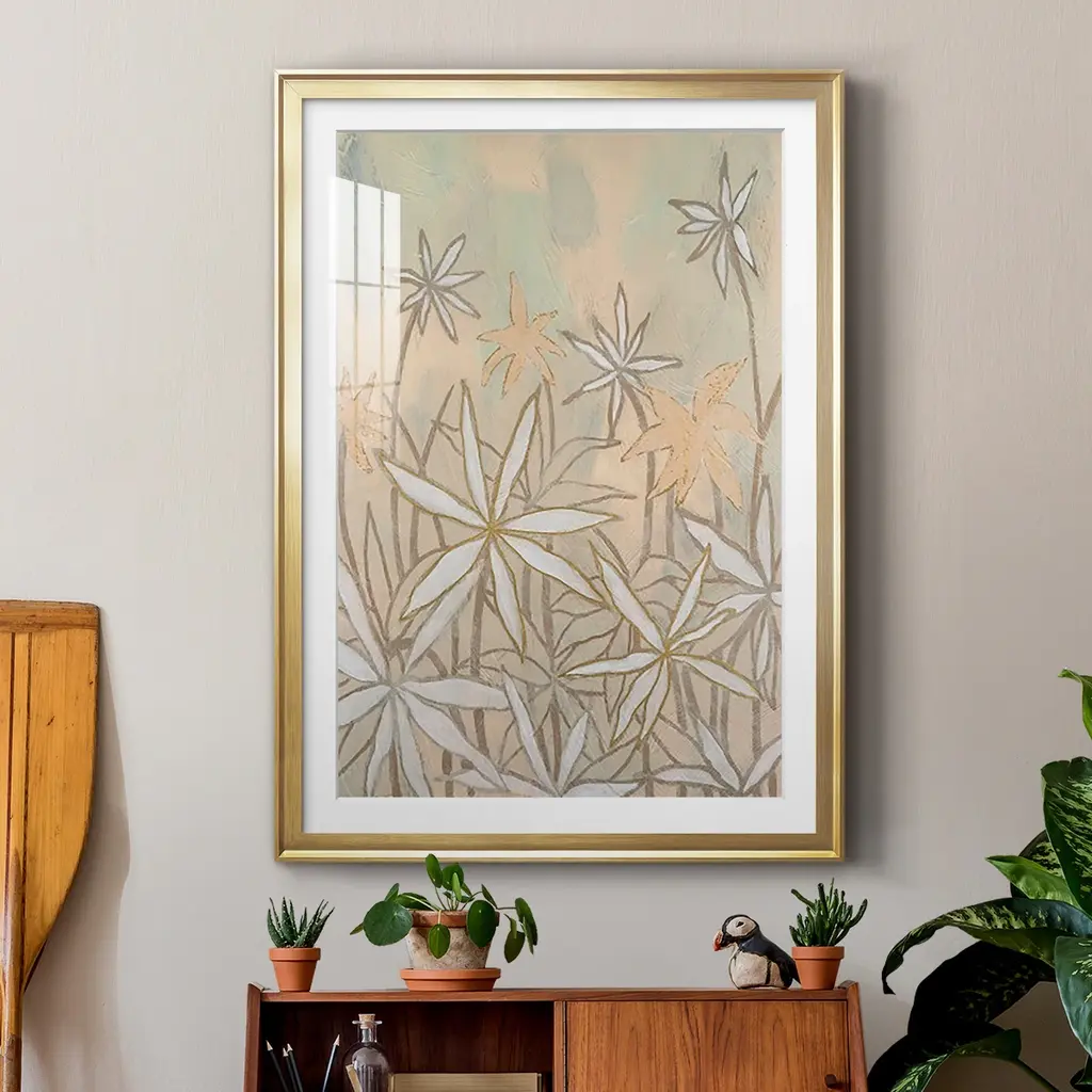 Embellished Starburst Bloom II Premium Framed Print - Ready to Hang A Premium Framed Print created to last. Framed in distressed wood and available in an array of sizes and colors Featuring a beveled a solid wood stretcher bar, each piece comes ready to hand 4 SIZES AVAILABLE 30.5''X42.5'' - Overall Size 26.5'X36.5'' - Overall Size 22.5''x30.5'' - Overall Size 18.5''x24.5'' - Overall Size Each piece is made to order. Each piece comes with hanging hardware. Made in the USA Ready to Hang Giclee Paper Print Acrylic Glass Beveled Matt Board