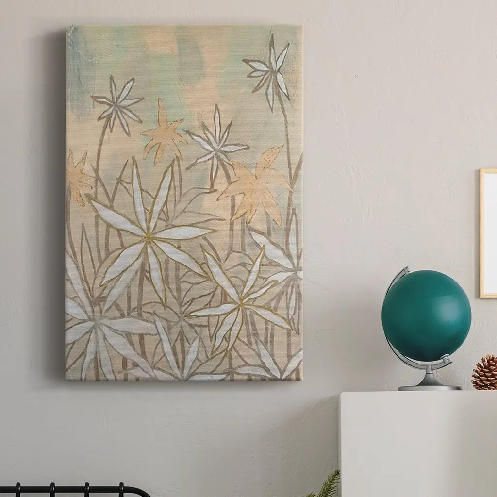 Embellished Starburst Bloom II Premium Gallery Wrapped Canvas - Ready to Hang A premium hand stretched gallery wrapped canvas print created to last. Featuring a beveled a solid wood stretcher bar, each piece comes ready to hand 6 SIZES AVAILABLE 8''X12'' - Overall Size 12''X18'' - Overall Size 18''X27'' - Overall Size 24''x36'' - Overall Size 32''x48'' - Overall Size 40''x60'' - Overall Size Each piece is made to order. Built to Last Each piece comes ready to hang Solid wood stretcher Fade and Water resistant Made domestically