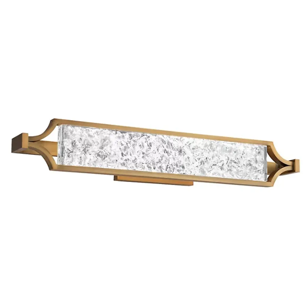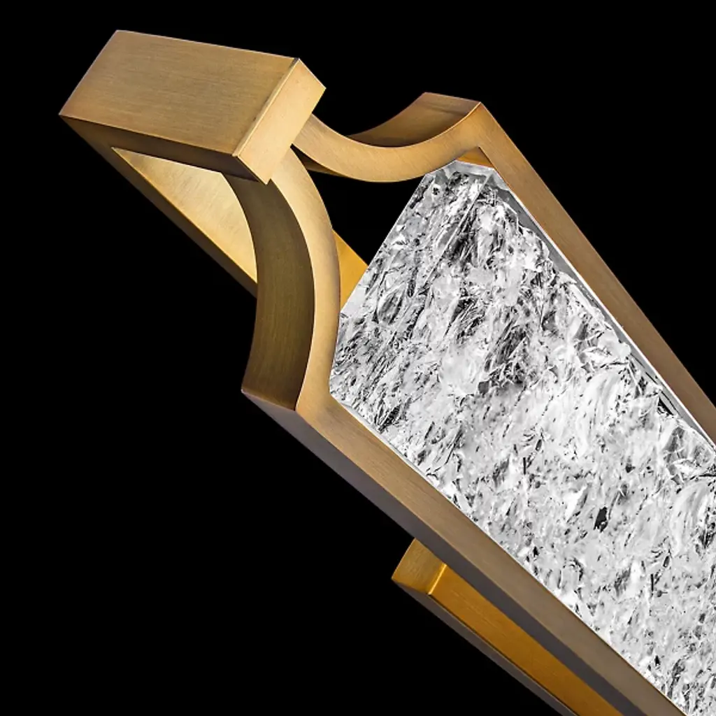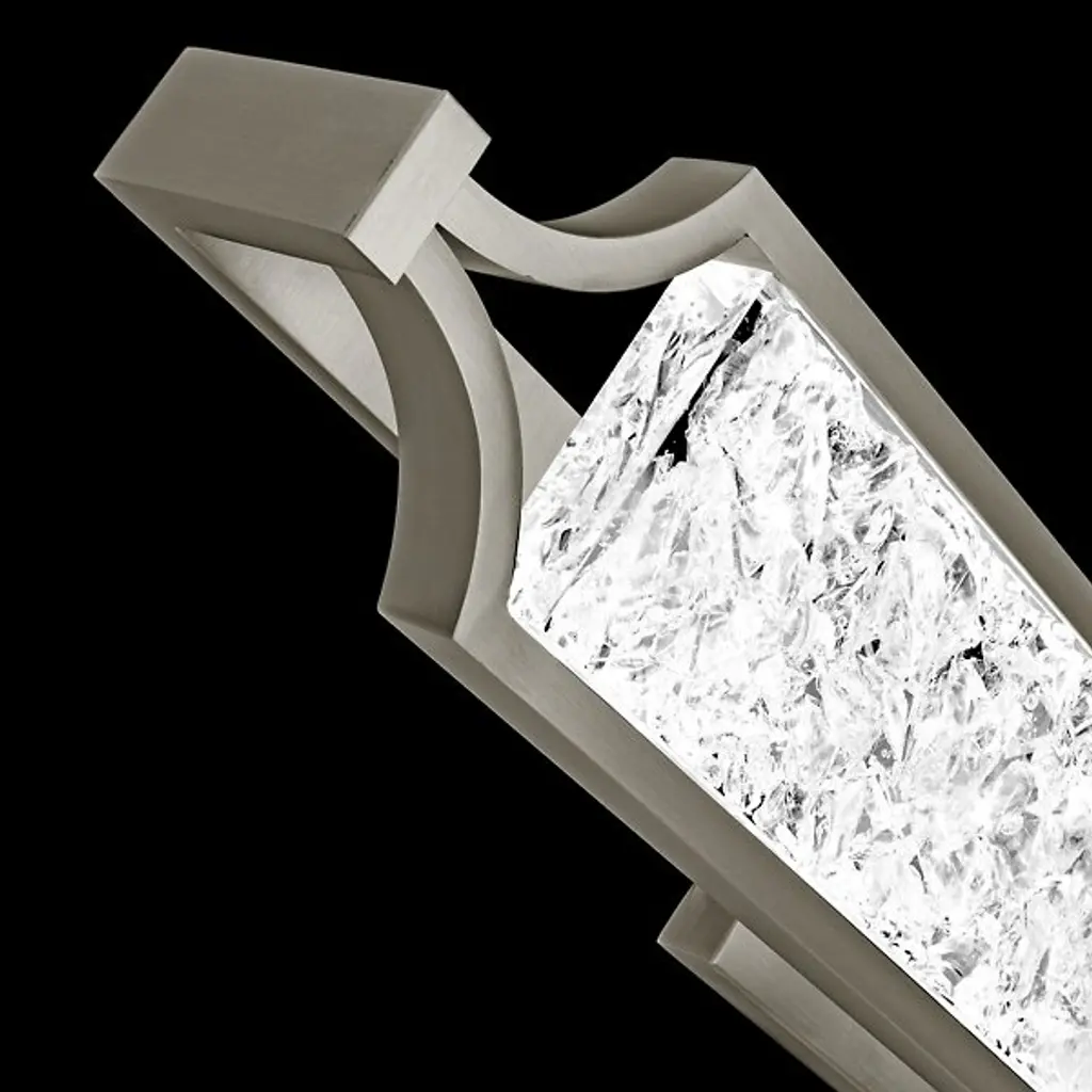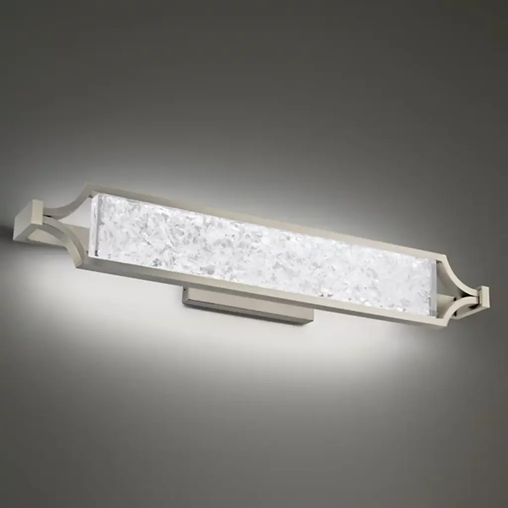 A badge of honor, radiating from edge to edge. The Emblem LED Vanity Light from Modern Forms serves your bathrooms with distinction. Its beauty is in its versatility, mounting to the wall either vertically or horizontally. The handsome aluminum structure produces vertical and curved lines that visually pop from the wall. Its sleek surface makes you want to glide your finger across it. For a shift in texture, an artisan-crafted clear crystal panel slots at the center like a true work of art. The fine details of the crystals jump out as LED light surges through them. The filtered LED glow radiates through your bathroom evenly and softly.