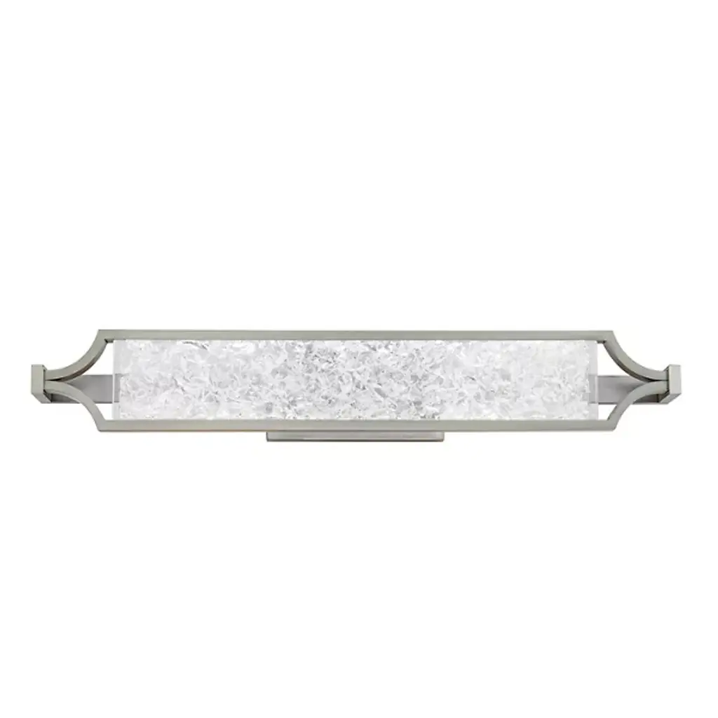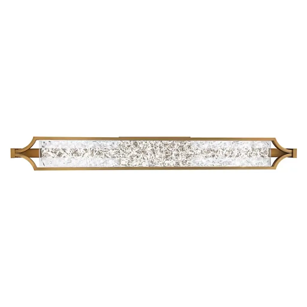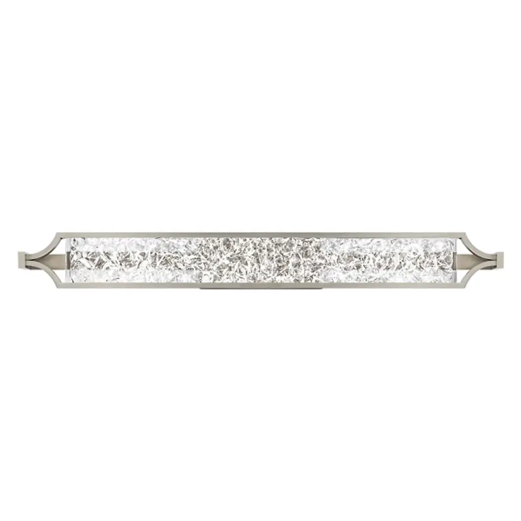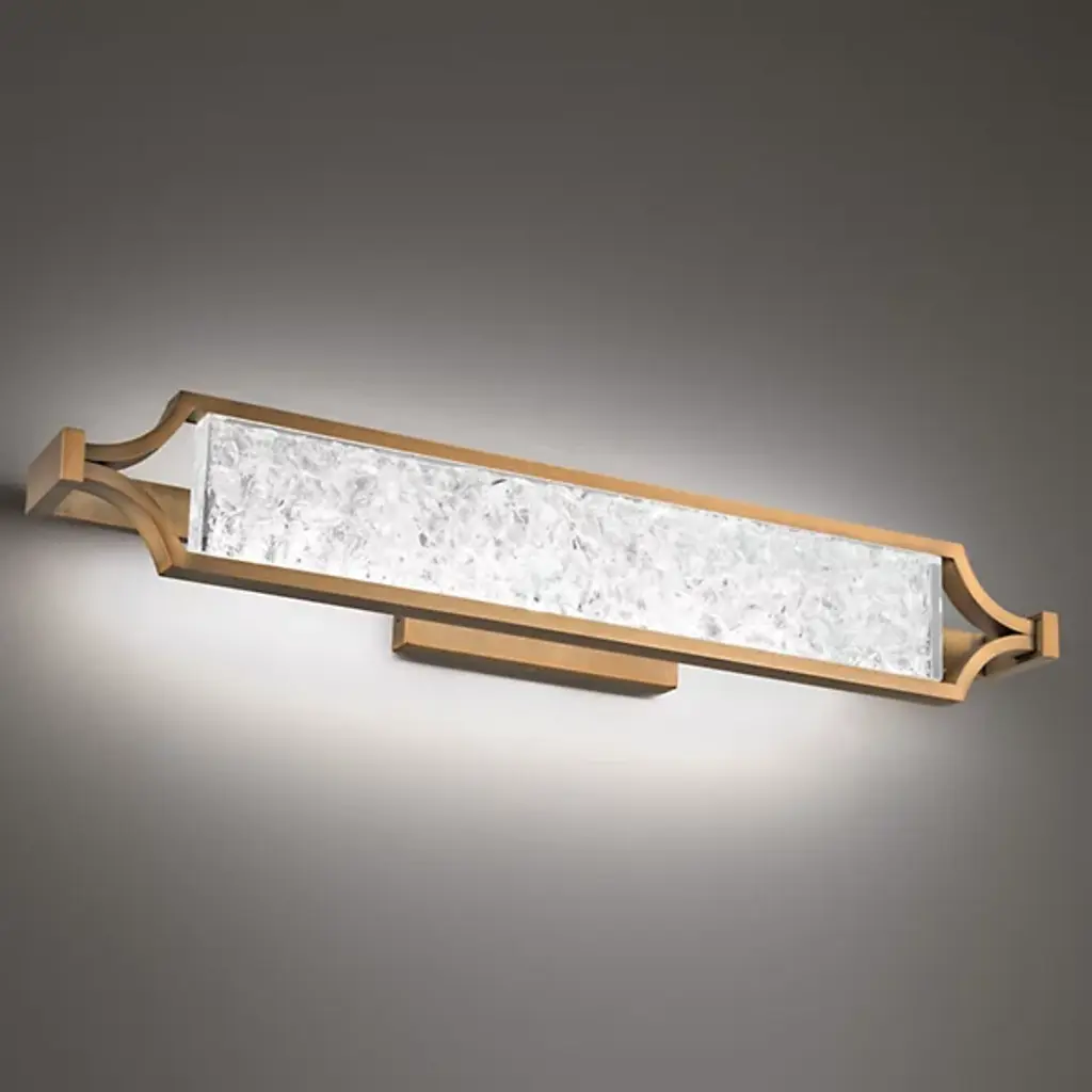 A badge of honor, radiating from edge to edge. The Emblem LED Vanity Light from Modern Forms serves your bathrooms with distinction. Its beauty is in its versatility, mounting to the wall either vertically or horizontally. The handsome aluminum structure produces vertical and curved lines that visually pop from the wall. Its sleek surface makes you want to glide your finger across it. For a shift in texture, an artisan-crafted clear crystal panel slots at the center like a true work of art. The fine details of the crystals jump out as LED light surges through them. The filtered LED glow radiates through your bathroom evenly and softly.