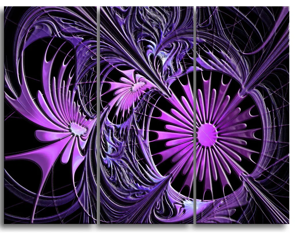 "Embossed Purple Floral Shapes" Wall Art Canvas, 3 Panels, 36"x28"