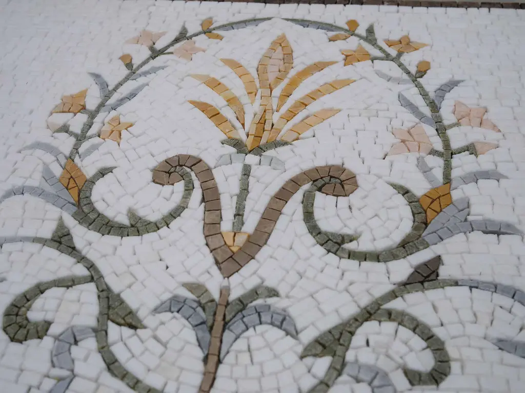 Introducing our exquisite "Embroidered Stones - Floral Mosaic Pattern," a stunning piece of artistry designed to elevate any space in your home. This remarkable mosaic showcases an intricate floral design that mimics the delicate beauty of embroidery, offering a unique blend of nature and craftsmanship that is truly captivating.Handcrafted with meticulous attention to detail, each stone and tile is carefully selected and arranged to create a harmonious mosaic that speaks to the beauty of floral patterns. The vibrant colors and textures of the stones bring a sense of warmth and elegance to your walls and flooring, making it a perfect choice for both modern and traditional interiors.Ideal for accent walls, entryways, or as a standout piece in your garden area, this floral mosaic adds a touch of sophistication and charm wherever it is placed. The durable materials used in its construction ensure that this artwork is not just beautiful but also long-lasting, standing up to the test of time and usage.Whether you're looking to refresh your living space, create an inviting atmosphere, or add a focal point to your decor, the Embroidered Stones - Floral Mosaic Pattern is the perfect solution. Transform your surroundings into a haven of style and elegance with this captivating handcrafted mosaic that embodies the beauty of nature through art.Elevate your decor with this timeless piece that brings life and artistry to every space. Redefine how you think about wall and floor decorations with the unique allure of our floral mosaic. Perfect as a gift or a treat for yourself, this mosaic is more than just decor; it’s a statement of art and craftsmanship that enhances your living experience. Embrace the beauty of handcrafted elegance with the Embroidered Stones - Floral Mosaic Pattern.
