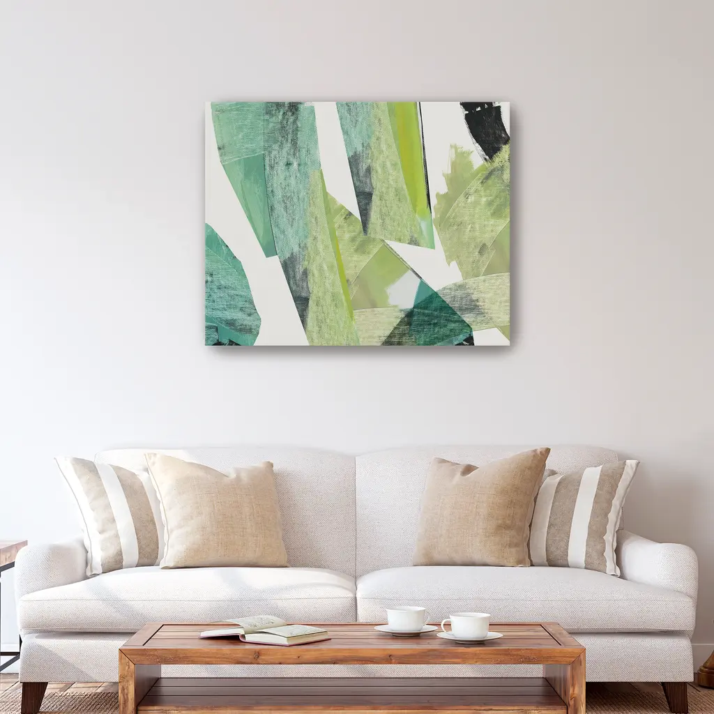 Introduce a touch of modern elegance to your space with "Emerald Geometric Harmony" canvas art. The minimalist design and soothing green hues create a calming atmosphere, making it a versatile addition to any room. Perfect for both contemporary and classic interiors, this artwork adds a subtle yet sophisticated accent to your decor. Available in black frame, dark walnut frame, oak frame, or as a wrapped canvas Our Gallery Wrap Canvas Prints are proudly assembled with high quality materials in California, USA. Each piece is printed on a thick, archival grade canvas using Giclee technology. It is then hand-stretched by our experienced artisans over solid wood bars, which will not warp over time. The final product is a piece personally crafted for you to confidently display on your wall. Care and Assembly: Ensure that the location of your piece has little to no exposure to heat, sunlight, and moisture. Wipe clean, only if needed. Each piece includes a sawtooth hanger to hang on your wall horizontally.