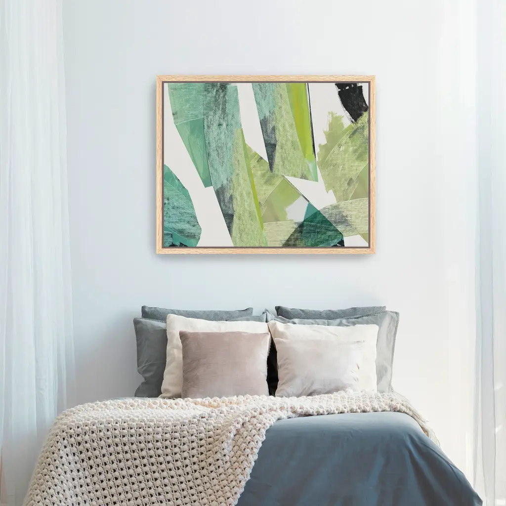 Introduce a touch of modern elegance to your space with "Emerald Geometric Harmony" canvas art. The minimalist design and soothing green hues create a calming atmosphere, making it a versatile addition to any room. Perfect for both contemporary and classic interiors, this artwork adds a subtle yet sophisticated accent to your decor. Available in black frame, dark walnut frame, oak frame, or as a wrapped canvas Our Gallery Wrap Canvas Prints are proudly assembled with high quality materials in California, USA. Each piece is printed on a thick, archival grade canvas using Giclee technology. It is then hand-stretched by our experienced artisans over solid wood bars, which will not warp over time. The final product is a piece personally crafted for you to confidently display on your wall. Care and Assembly: Ensure that the location of your piece has little to no exposure to heat, sunlight, and moisture. Wipe clean, only if needed. Each piece includes a sawtooth hanger to hang on your wall horizontally.