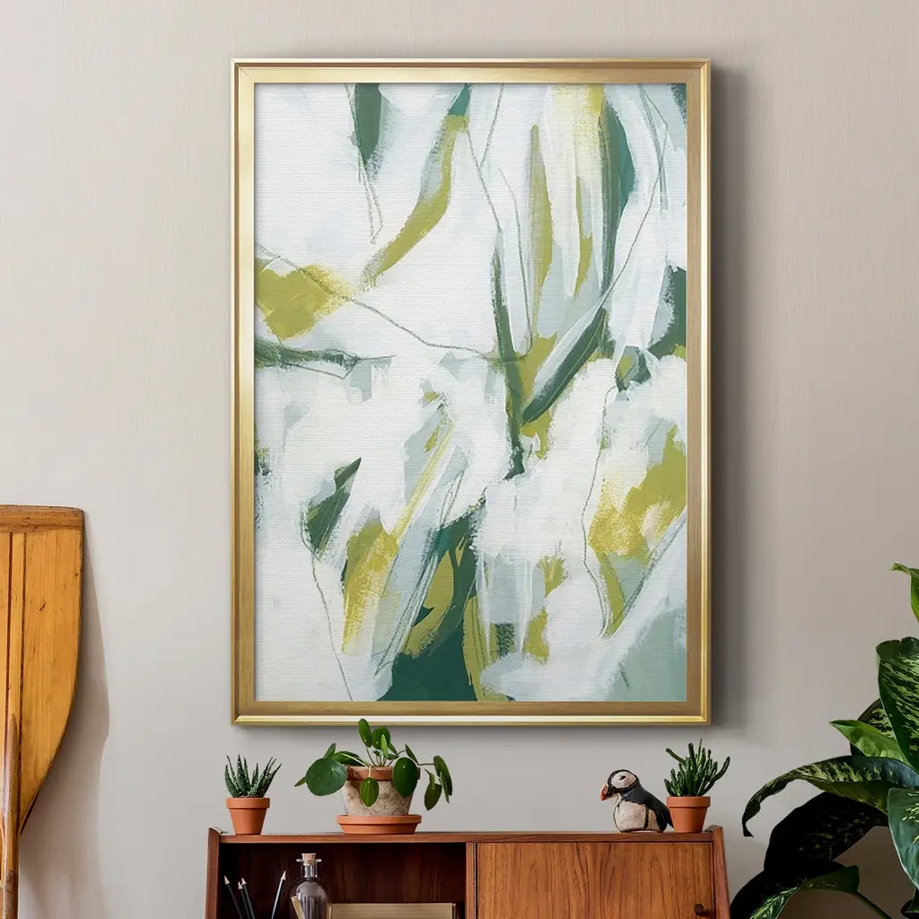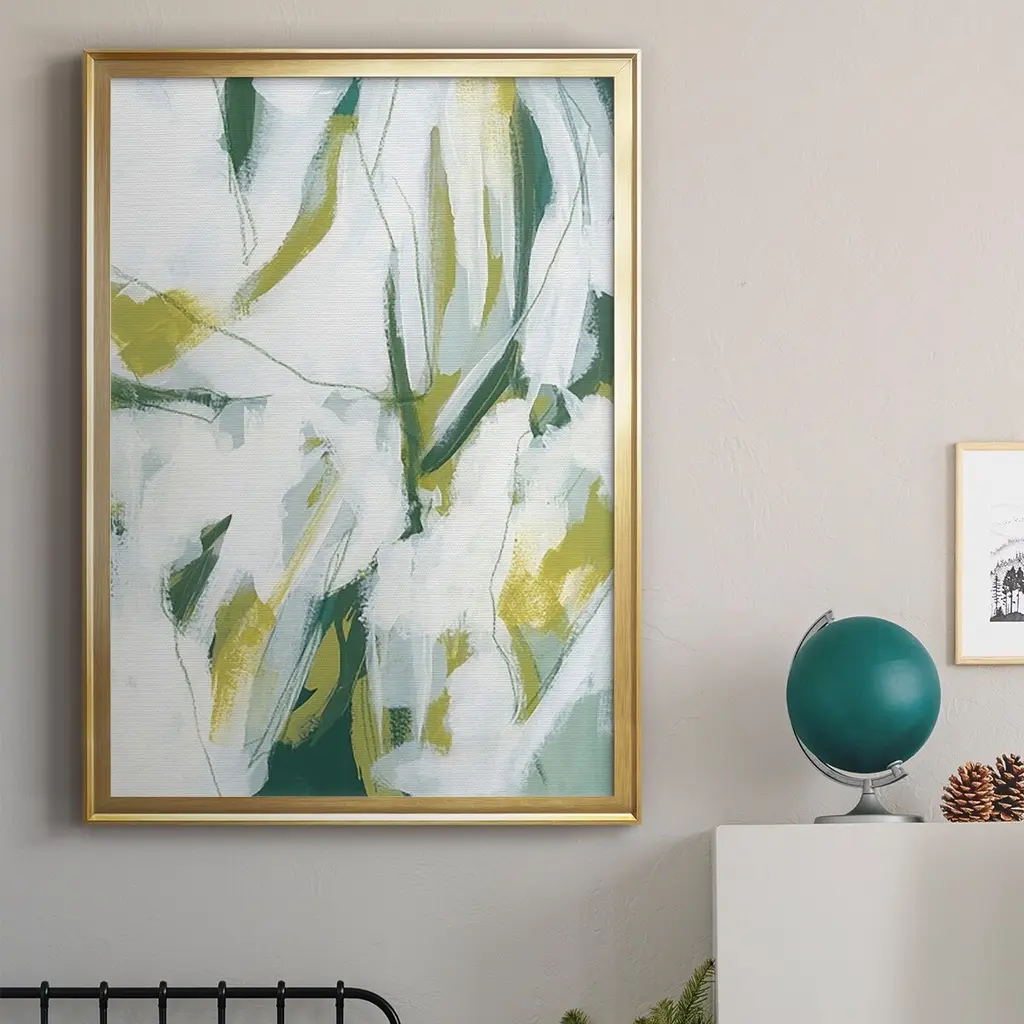 Emerald Ice I Premium Framed Print - Ready to Hang A Premium Framed Print created to last. Framed in distressed wood and available in an array of sizes and colors Featuring a beveled a solid wood stretcher bar, each piece comes ready to hand 4 SIZES AVAILABLE 30.5''X42.5'' - Overall Size 26.5'X36.5'' - Overall Size 22.5''x30.5'' - Overall Size 18.5''x24.5'' - Overall Size Each piece is made to order. Each piece comes with hanging hardware. Made in the USA Ready to Hang