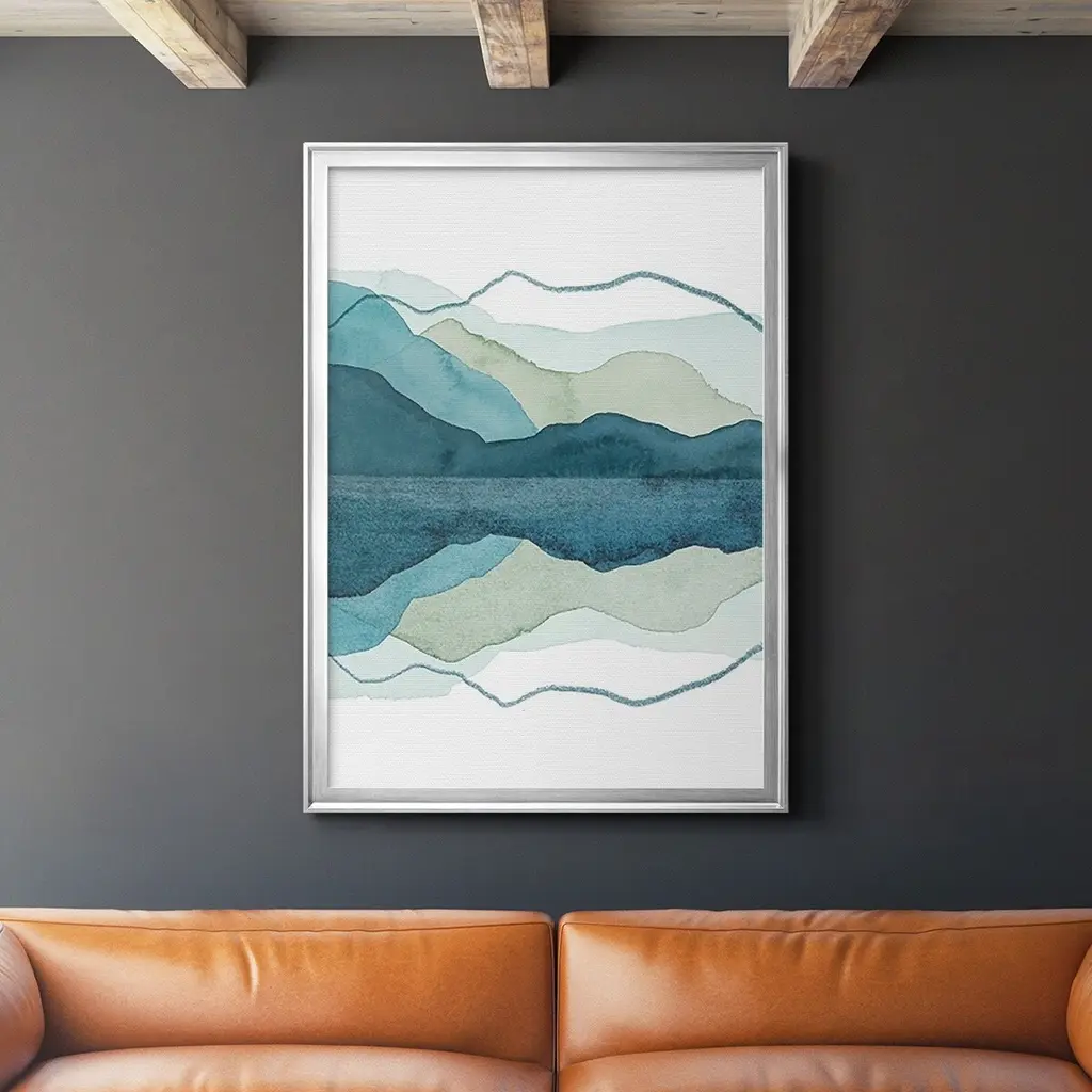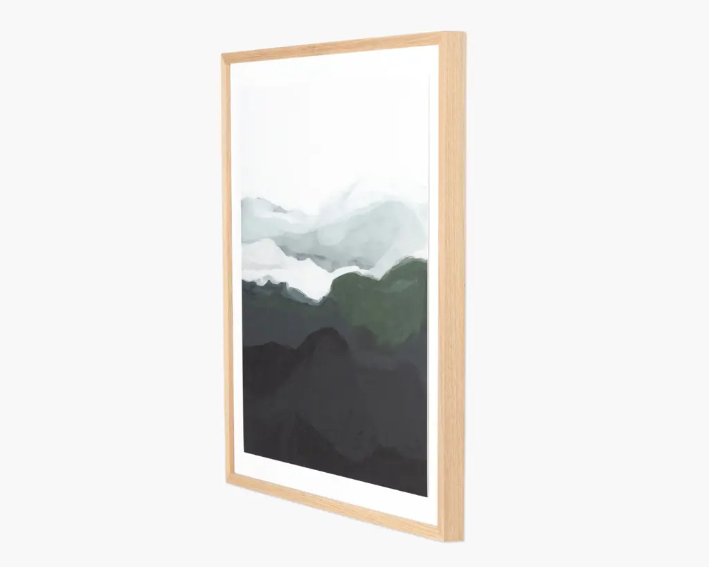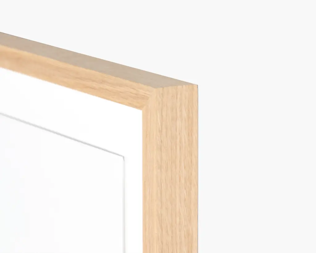 Combining graphic design with modern minimalism, this piece finds inspiration in the coastal landscapes of England and framed within vertical grain white oak for a museum-quality look. Size shown is print size, add frame thickness to print size for total frame size Weight: 20 lbs Watercolor Paper Hang with picture perfect