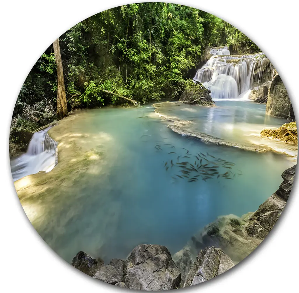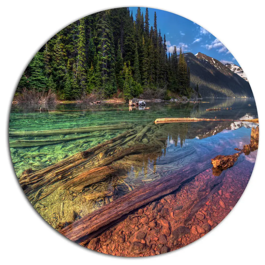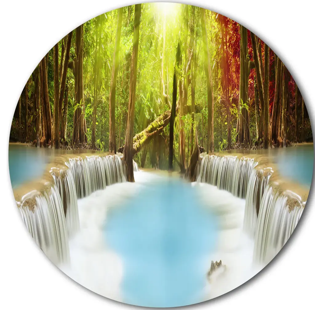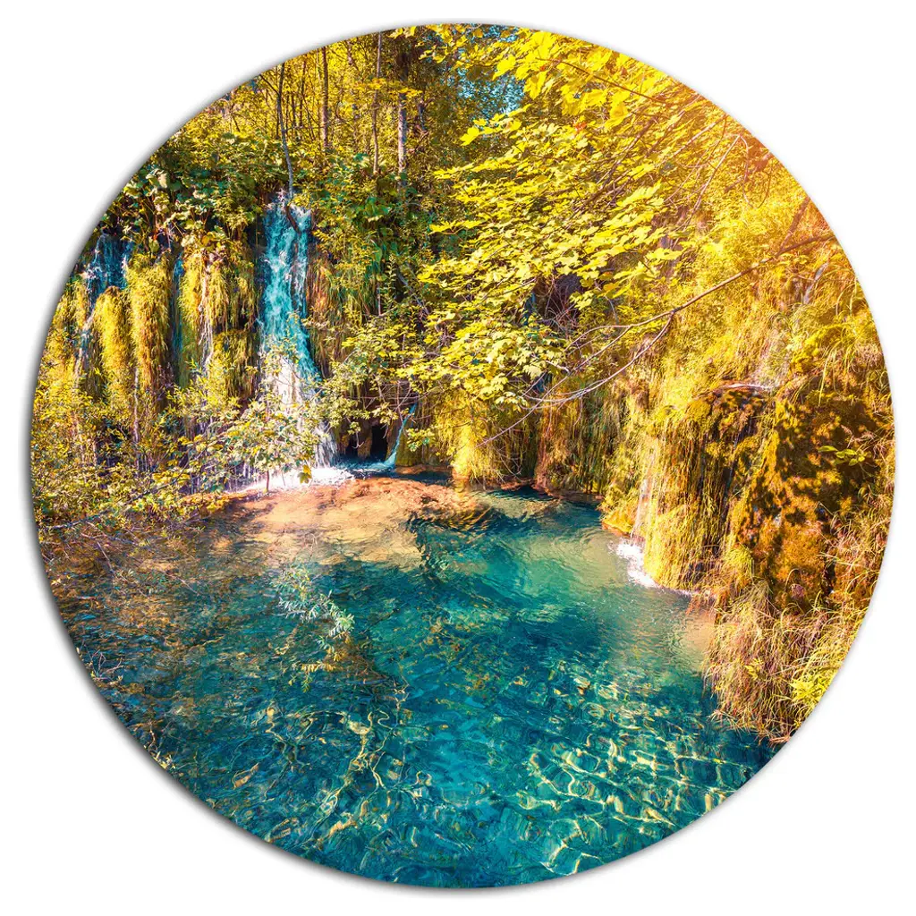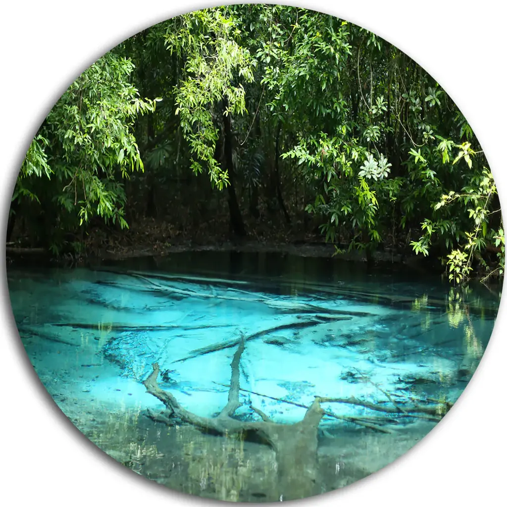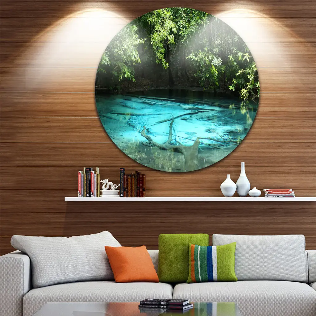 Bring Contemporary Abstraction to your home with this large Circle Metal wall art. This Emerald Pond in Deep Forest Metal Artwork makes it the focal point of any room or office. - White Gloss Coating ensures colors are extra vibrant with light reflection.- Aluminum grade Sheet Metal with 1 inch mounting frame on the back giving the illusion that the artwork is floating on the wall..- Mounting Brackets are included along with instructions.- High Quality Digital images are created directly into a glossy aluminum panel producing a stunning and captivating print into the glossy finish of the metal.- Water, Fire and Scratch resistant HD Aluminum panels.- Looks better than any photo paper and guaranteed to last at least 20 years- Easy to clean with a microfiber cloth. Colors are far superior to regular Canvas Art. - Easy to Hang