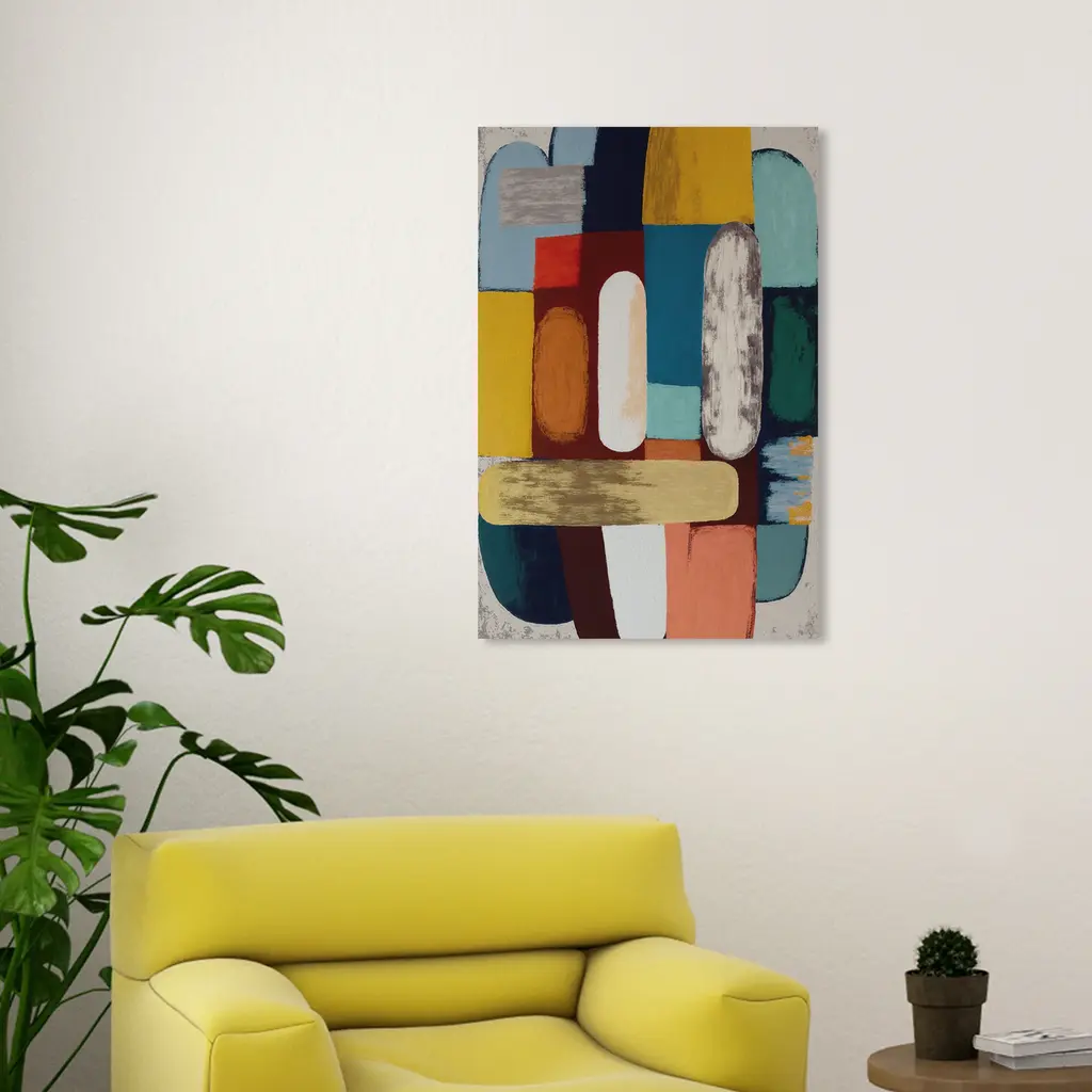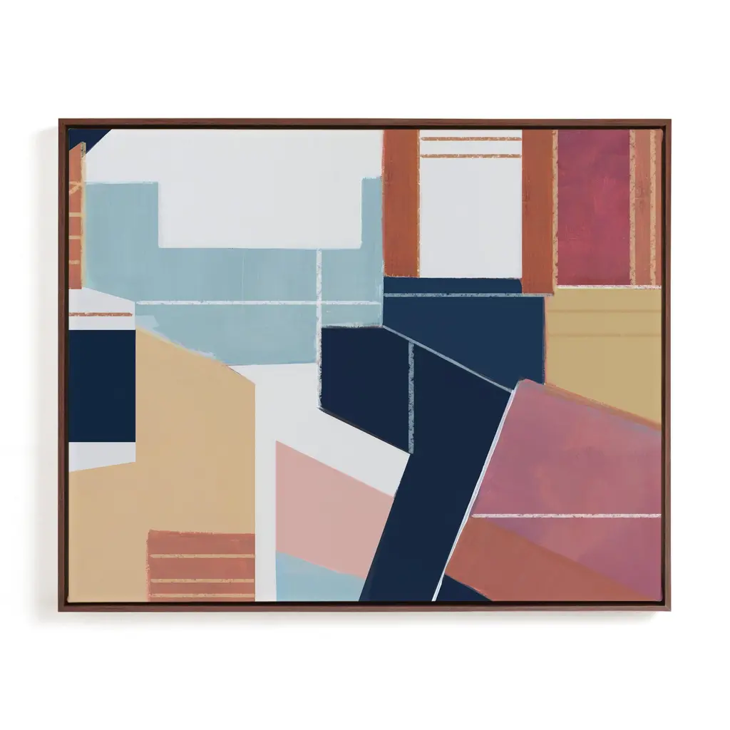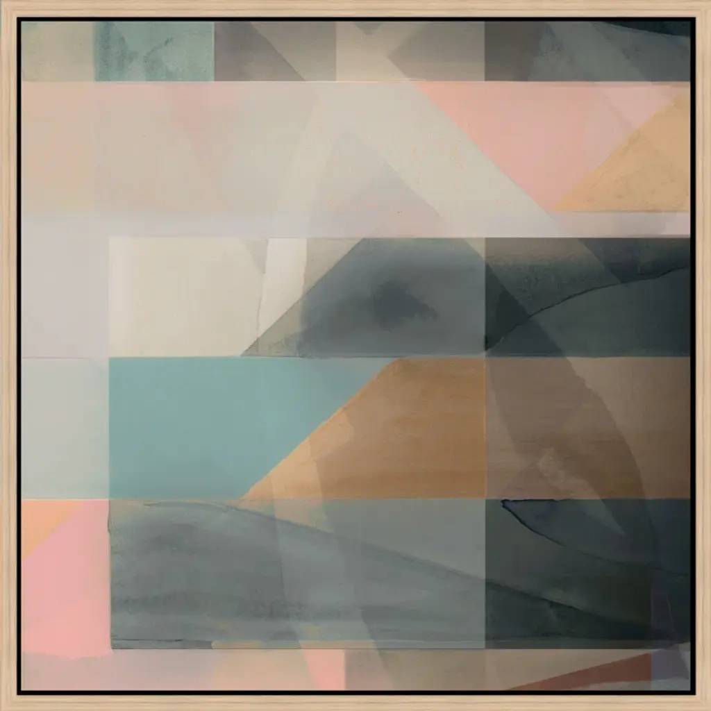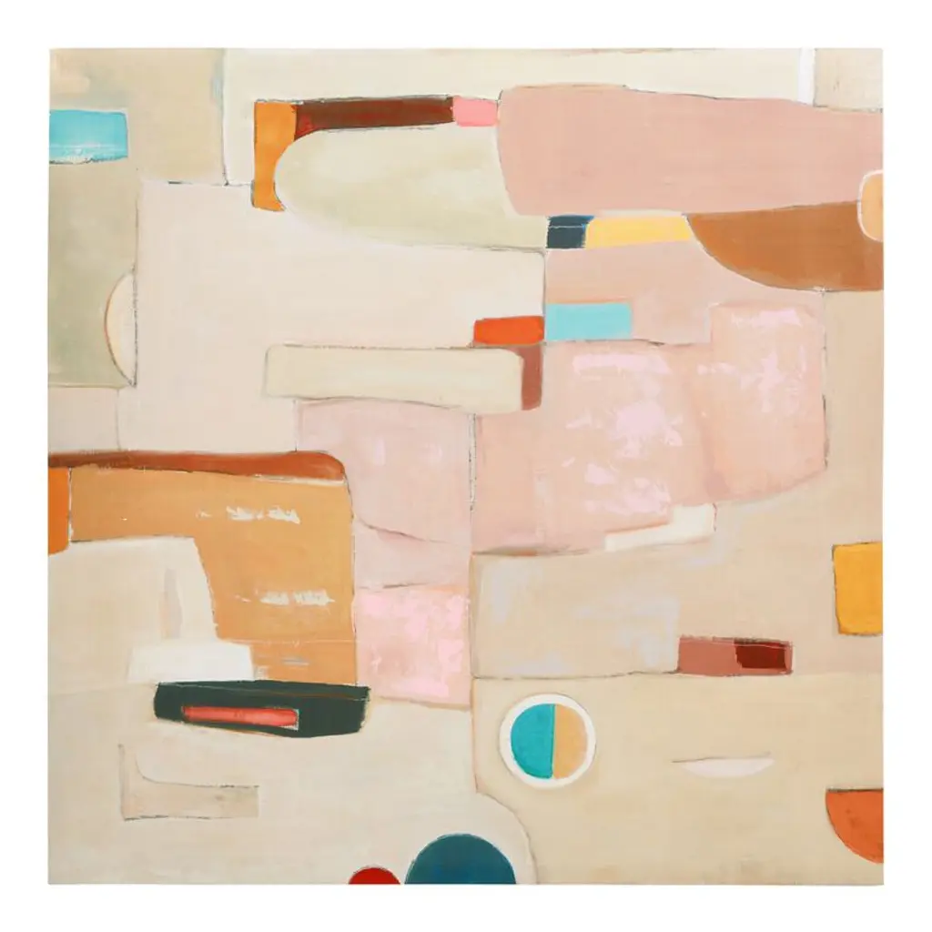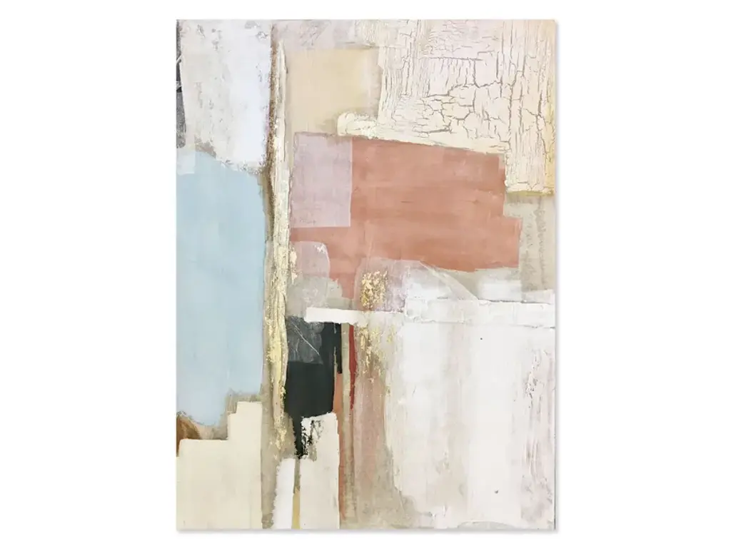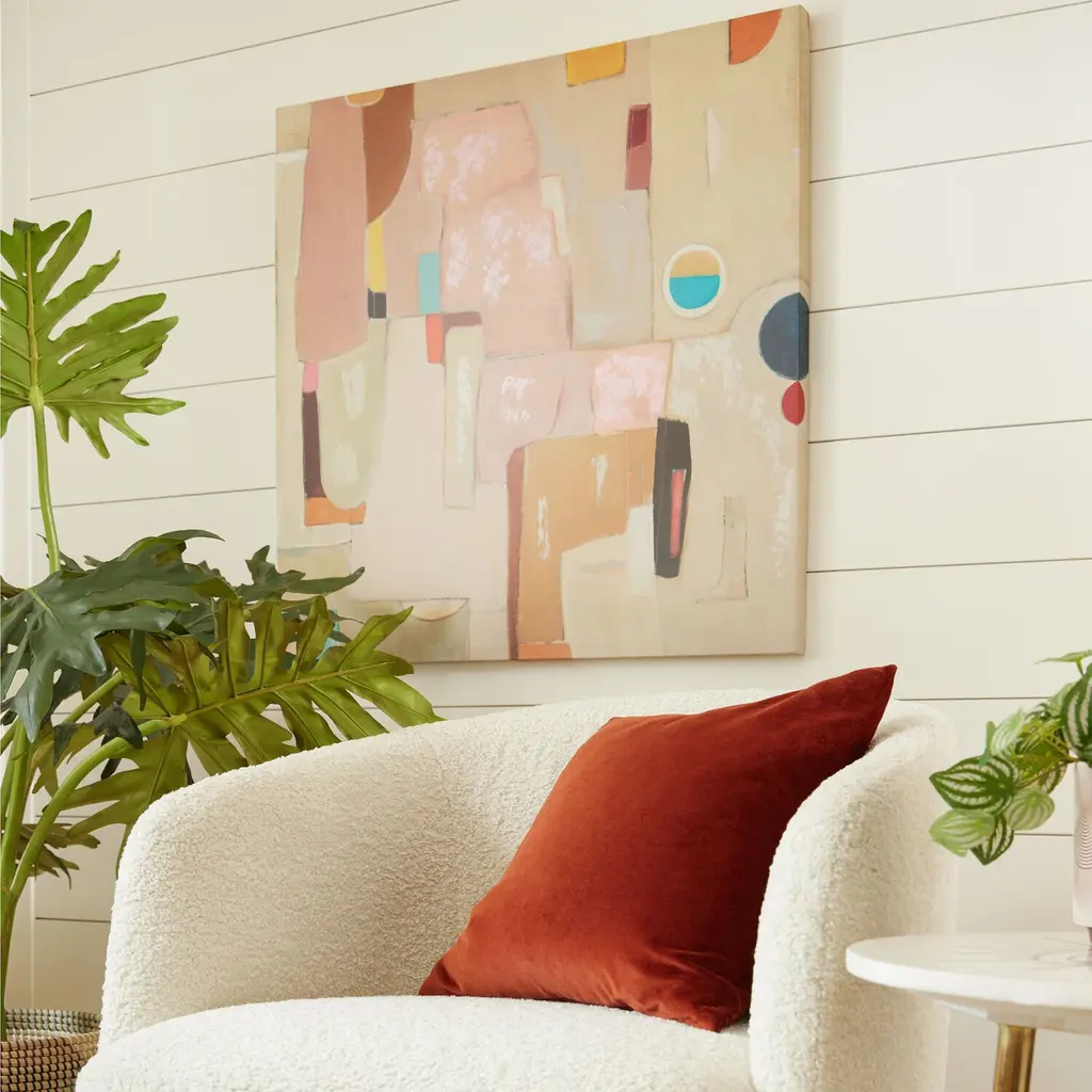 Featuring hand-painted embellishments, our exclusive painting features abstract shapes in neutral tones accented with vivid pops of color. Known for her abstract expressionist style, artist Alex Gerrard seeks to invoke an unexpected response. A third-generation artist, Gerrard describes their process as meditative and paints daily with their mother and two sisters.
