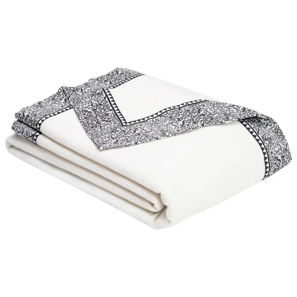 Emilie Merino White Queen-Size Blanket With Custom Print Border By Jg Switzer