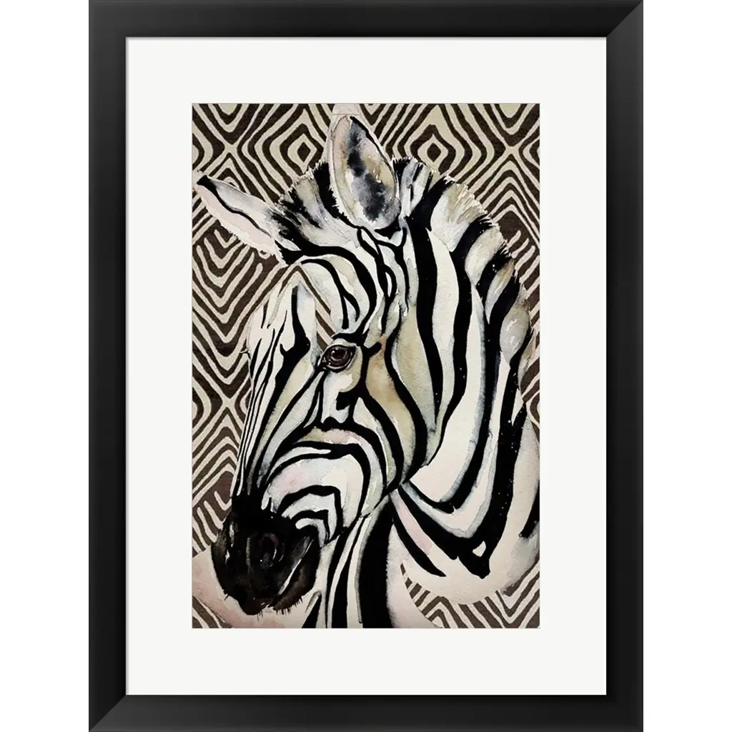 Designer Zebra by Emma Catherine Debs is a high quality piece of framed artwork. The finished size of this piece is 18.75" X 24.75". It has a Slim Solid Black Flat with Satin Finish frame, is single matted and finished with high quality Acrylic Plexiglass. 100% Satisfaction Guaranteed.