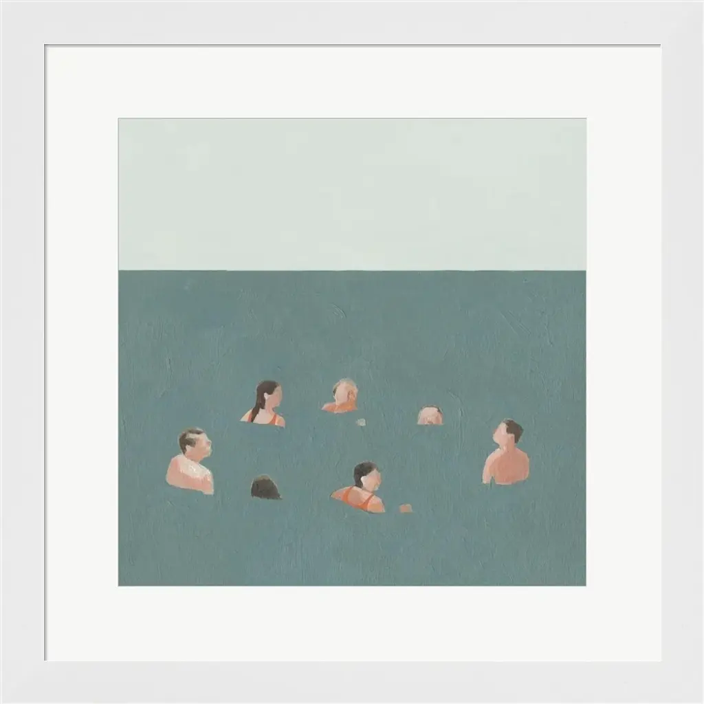 The Swimmers I by Emma Scarvey is a high quality piece of framed artwork. The finished size of this piece is 20.5" X 20.5". It has a Slim Solid White Flat with Satin Finish frame, is single matted and finished with high quality Acrylic Plexiglass.
