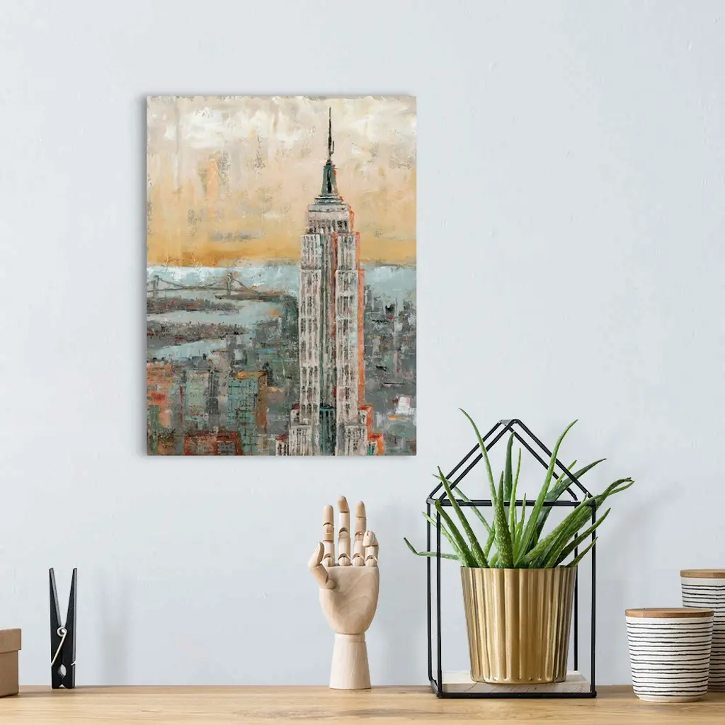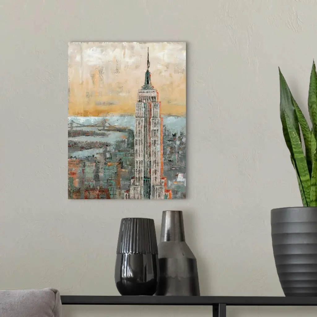 Contemporary painting of the Empire State Building in New York, in subdue tones, with a distressed appearance.