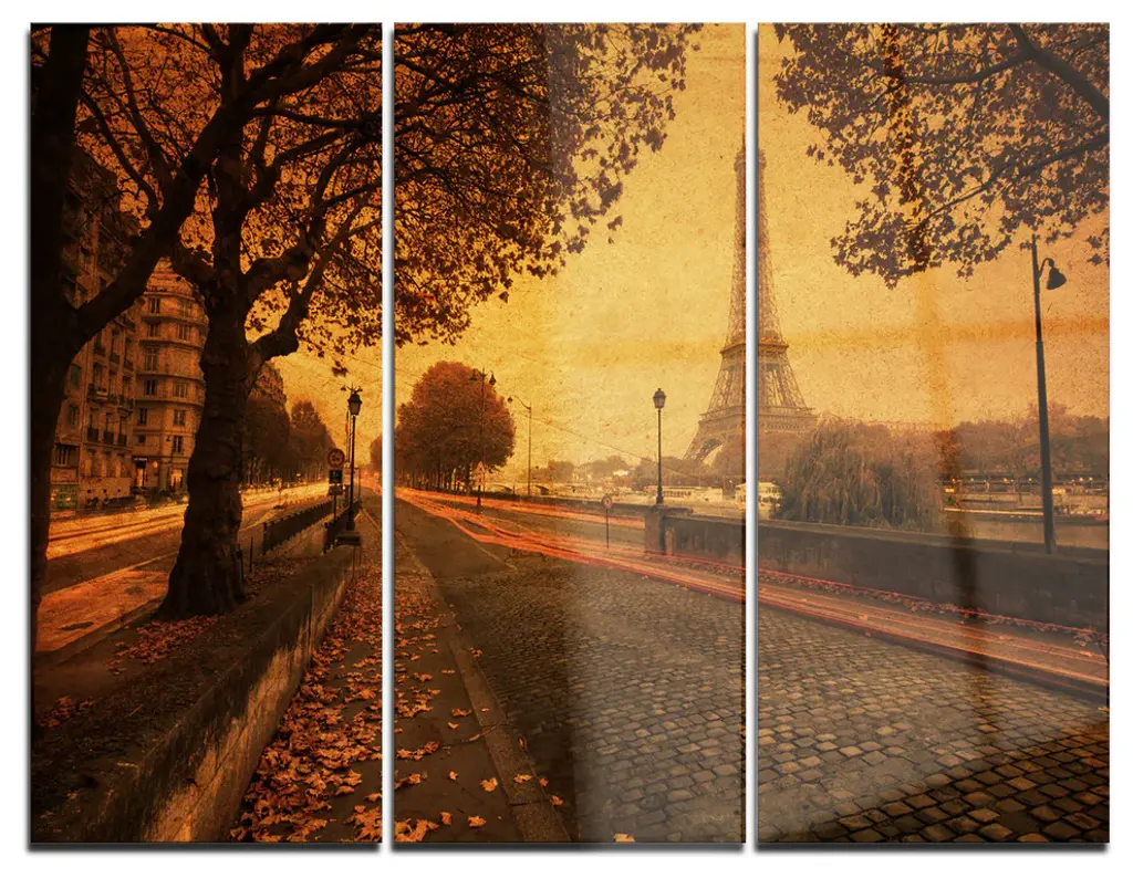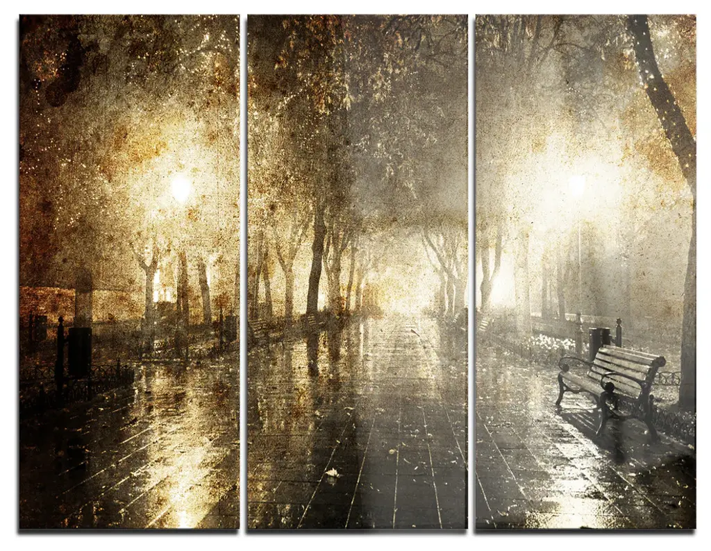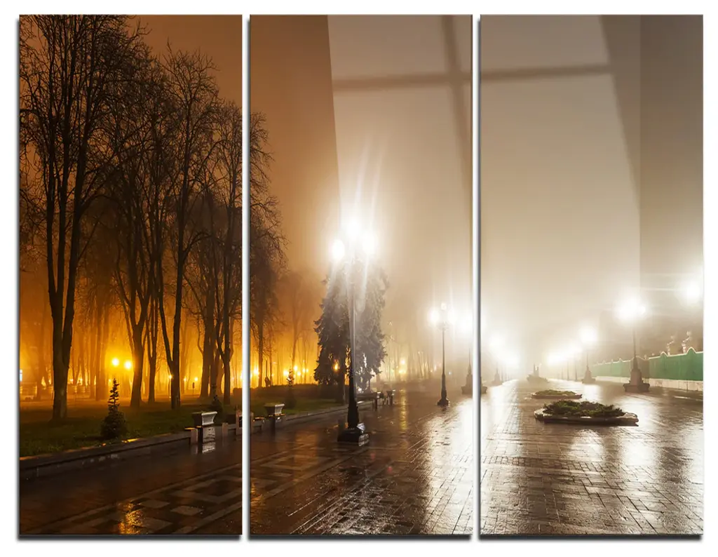 "Empty Autumn Street" Glossy Metal Wall Art, 3 Panels, 36"x28"