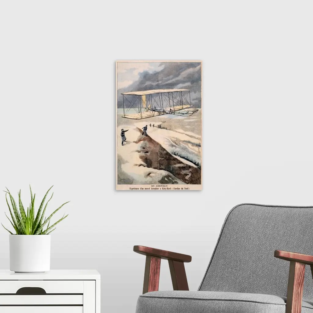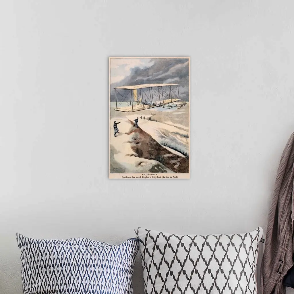 En Amerique, Airplane Kitty Hawk, Vintage Poster, by Carrey wall art for home and office decor. Discover canvas art prints, photos, mural, big canvas art and framed wall art in GreatBigCanvas.com's varied collections.