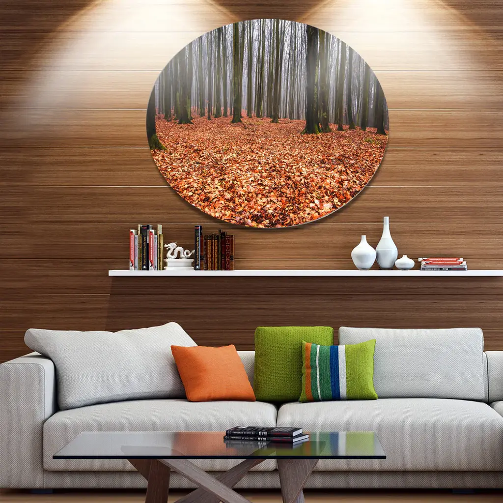 Bring Contemporary Abstraction to your home with this large Circle Metal wall art. This Enchanted and Magical Fall Forest Metal Artwork makes it the focal point of any room or office. - White Gloss Coating ensures colors are extra vibrant with light reflection.- Aluminum grade Sheet Metal with 1 inch mounting frame on the back giving the illusion that the artwork is floating on the wall..- Mounting Brackets are included along with instructions.- High Quality Digital images are created directly into a glossy aluminum panel producing a stunning and captivating print into the glossy finish of the metal.- Water, Fire and Scratch resistant HD Aluminum panels.- Looks better than any photo paper and guaranteed to last at least 20 years- Easy to clean with a microfiber cloth. Colors are far superior to regular Canvas Art. - Easy to Hang