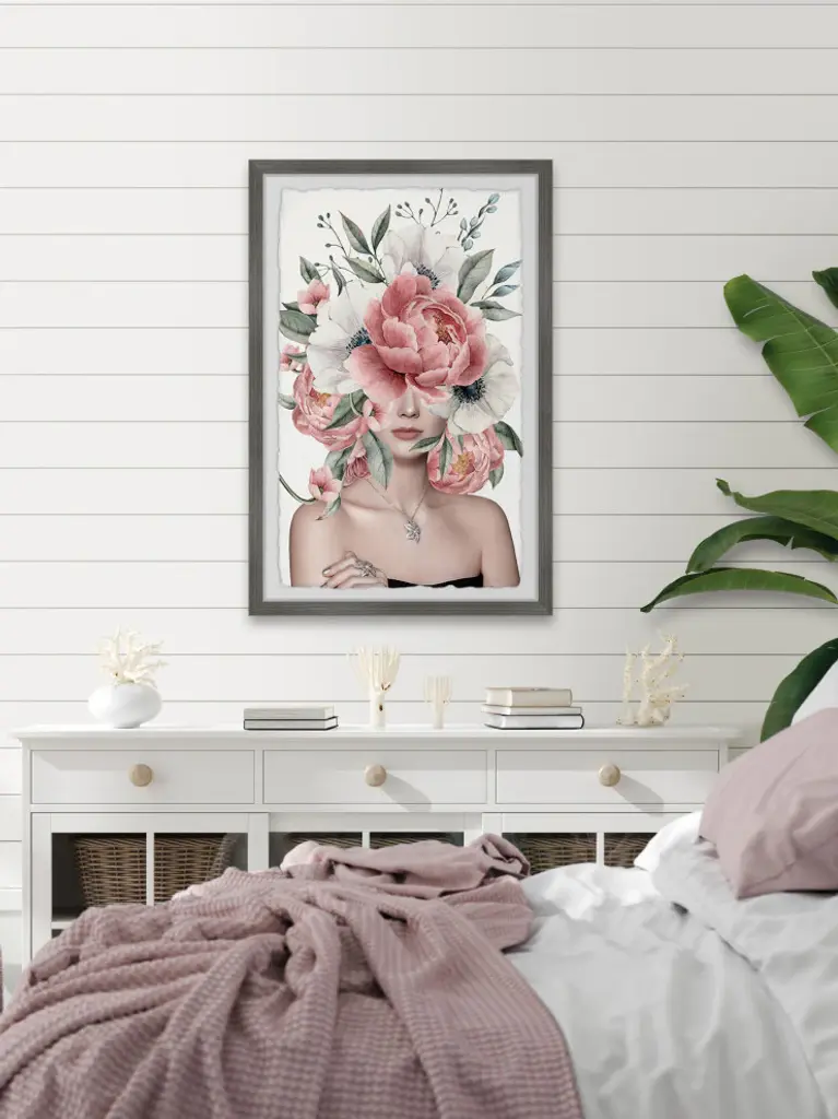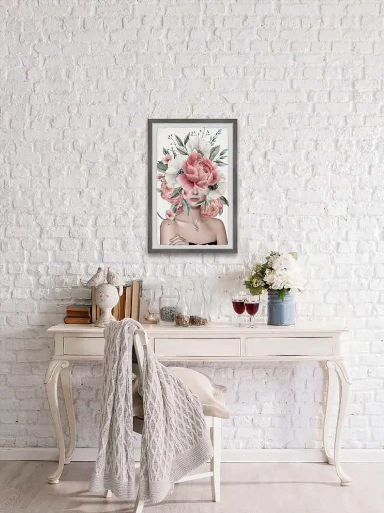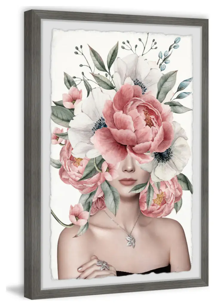 Whether placed in a foyer or living room, this photographic print is sure to become a conversation starter in the house. Featuring the portrait of a woman whose face is being covered by pink and white flowers that seem to pop out at the viewer. Proudly printed in the USA, this piece is printed on high quality archive paper and professionally hand-framed. With wall-mounting hooks included, this artful accent is ready to hang up as soon as it reaches your front door.Top quality Giclee print on high resolution Archive PaperHand cut deckled edgesHigh quality durable non-warping frameFinished under shatter resistant plexiglassArrives ready to hangIncludes a certificate of authenticityPrinted in the USA